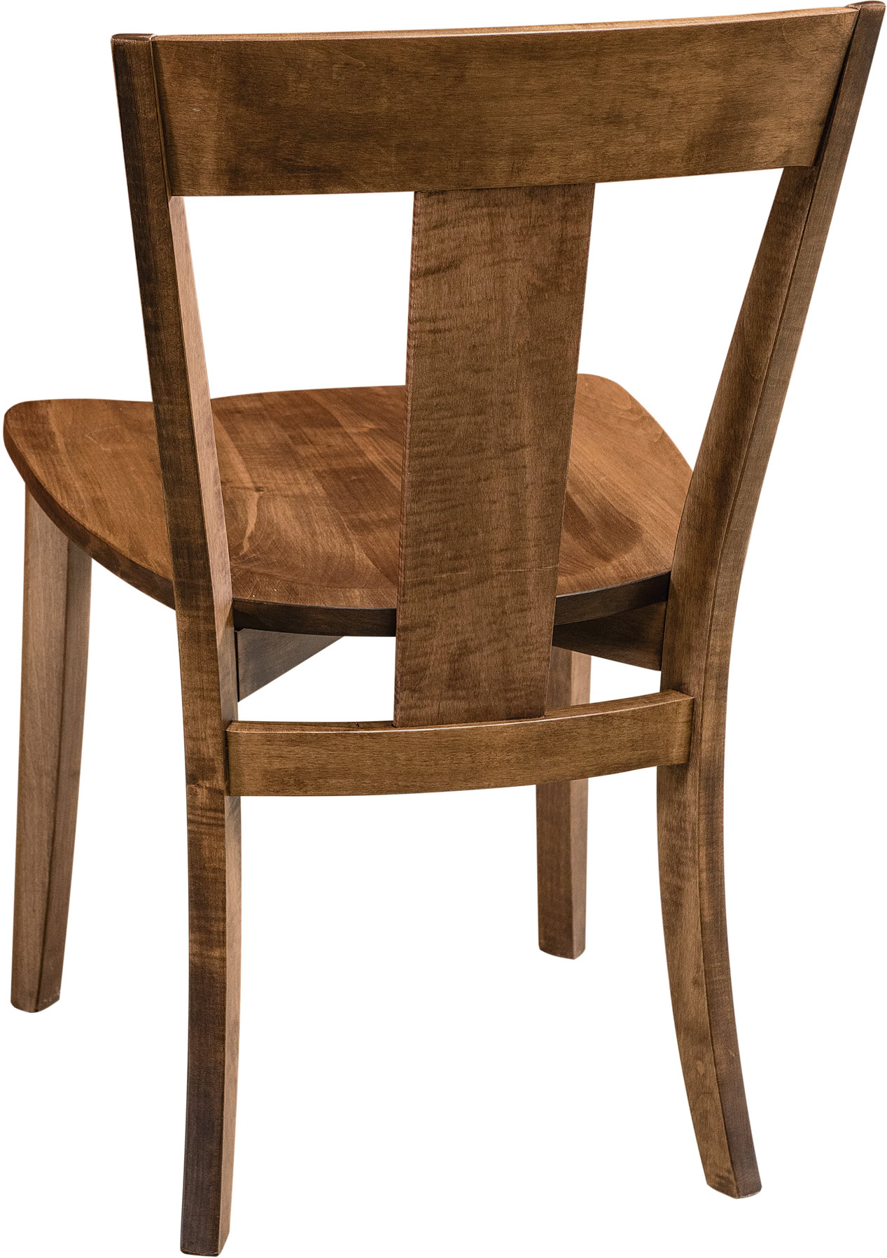 A curved back, wide backrest and contoured seat make the Ellen Dining Chair a comfortable choice for your dining room. For extra comfort, you can add padded seats. Also, the smart design adds eye appeal. Amish cabinetmakers handcraft each chair. In addition, they use top hardwoods. Like brown maple (shown with FC 107 Harvest stain). What’s more, our builders use mortise and tenon joints for heirloom-quality durability. So make it yours. Simply complete the customizing fields below. With your choices for wood specie, finish and more. Or call 855-768-3270.