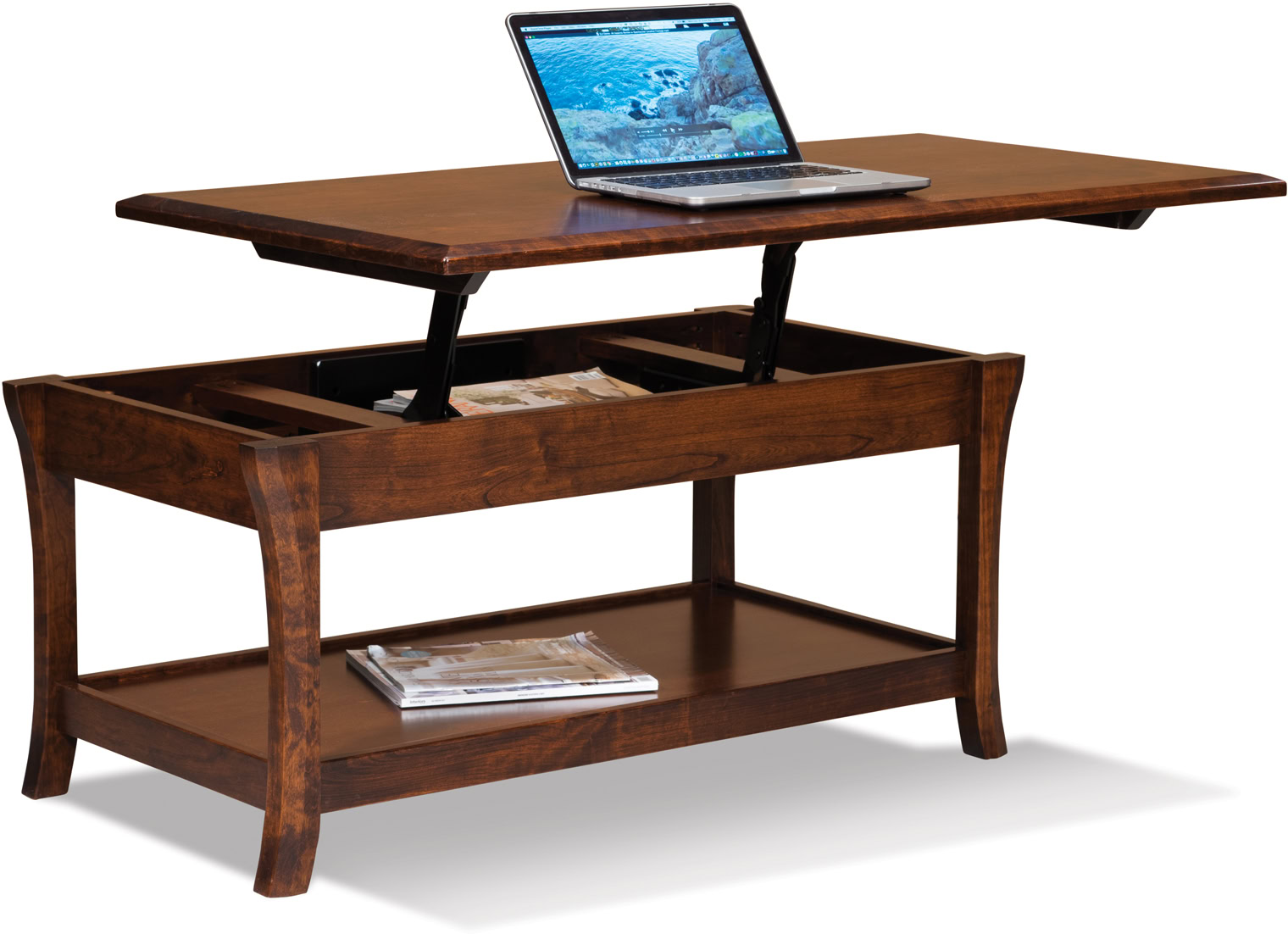We offer the Ensenada Coffee Table with fantastic standard features. A single, wide, full-extension drawer opens to reveal all of its contents. So, you won’t be rummaging through the drawer trying in vain to find a remote control. Satin nickel drawer pulls add a touch of elegance to the table as well. However, if you’d prefer to omit the drawer, you can select the lift-top option. As the top raises to 29 1/4 inches, the coffee table becomes the perfect spot to work at your laptop or have a meal at the comfort of your couch.