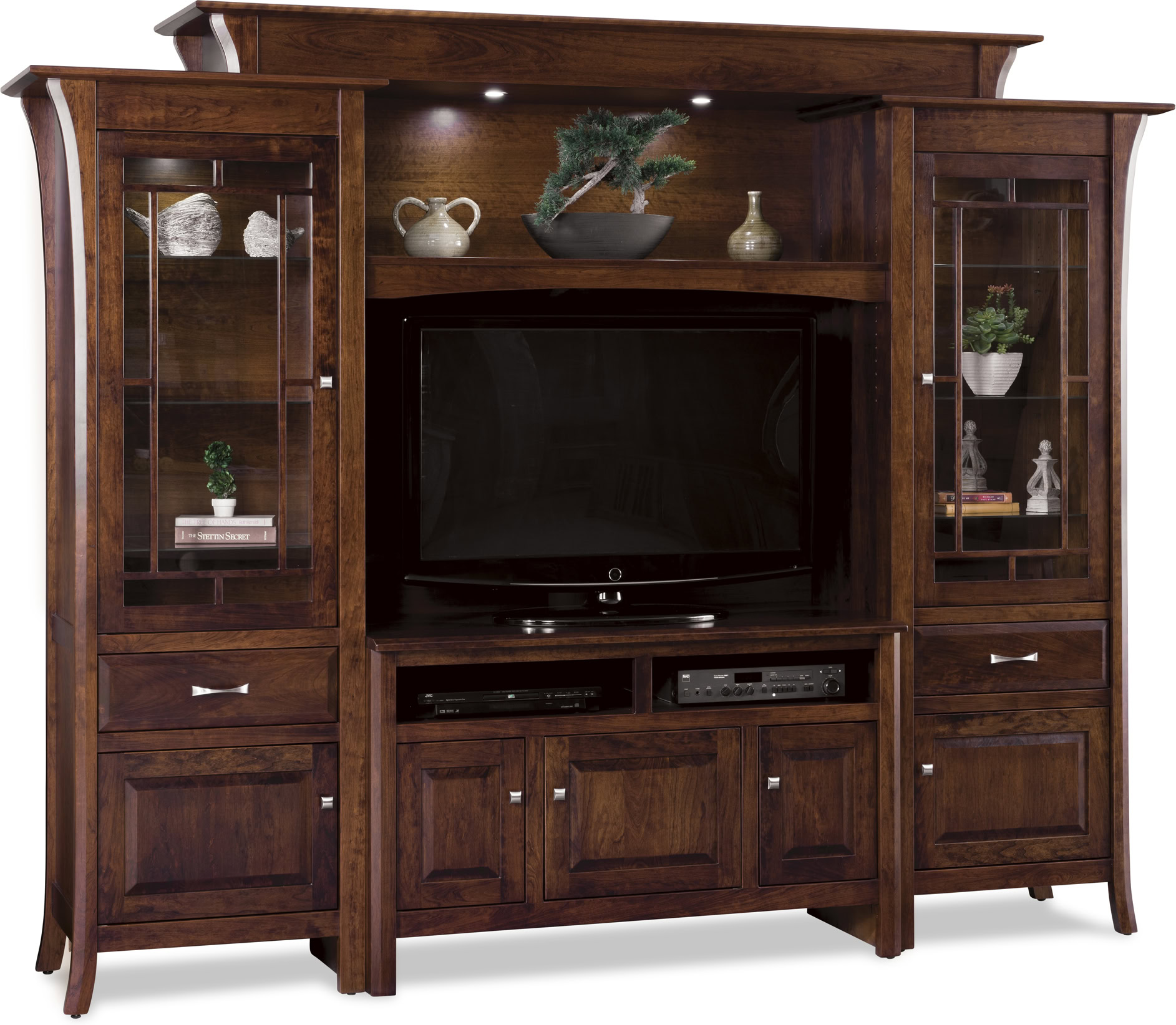 The Ensenada Wall Unit provides all the media storage you could need while it brings elegance into your home. Featuring beautiful wood grain, lovely mullioned glass doors, and delicate curves, this wall unit makes a bold statement. Our Amish furniture makers are experts in their craft. They take great pride in their high quality products, so you should enjoy it for years to come with proper care.