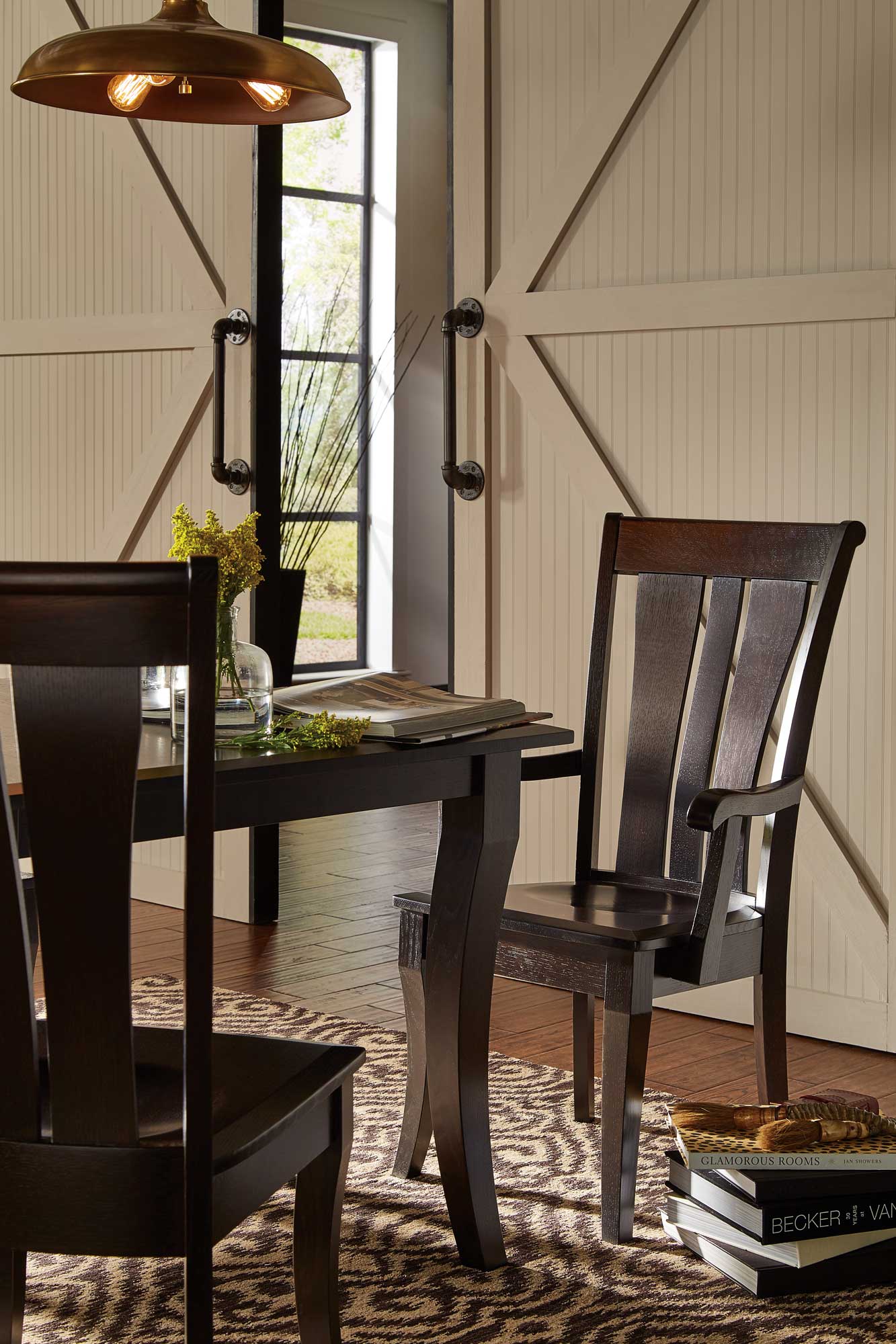 The Fenmore Dining Set epitomizes fine cabinetmaking. From the graceful curves in the slats and legs to the rounded-over design at the top of each chairback. What a spectacular set for your dining room! You can enhance the look and feel of the set even more. Simply request upholstered leather or fabric seats. And we have many leather and fabric options to choose from. Also, the table is available in two widths and three lengths. Plus, you can add leaves to accommodate more friends and family. Amish cabinetmakers build each Fenmore Dining Set. In addition, they use top hardwoods. So the collection is incredibly sturdy. Durable. Also heirloom-quality! To order, click the “Customize this product” button below. Then, complete the “Customize Product” fields. Also click the “Get your customized quote” button. Or call 855-768-3270.