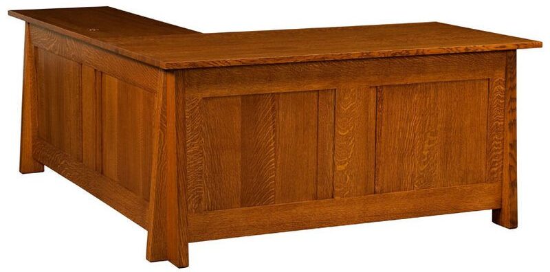 The Freemont Mission Corner Desk with Topper features a rich finish and tons of storage.