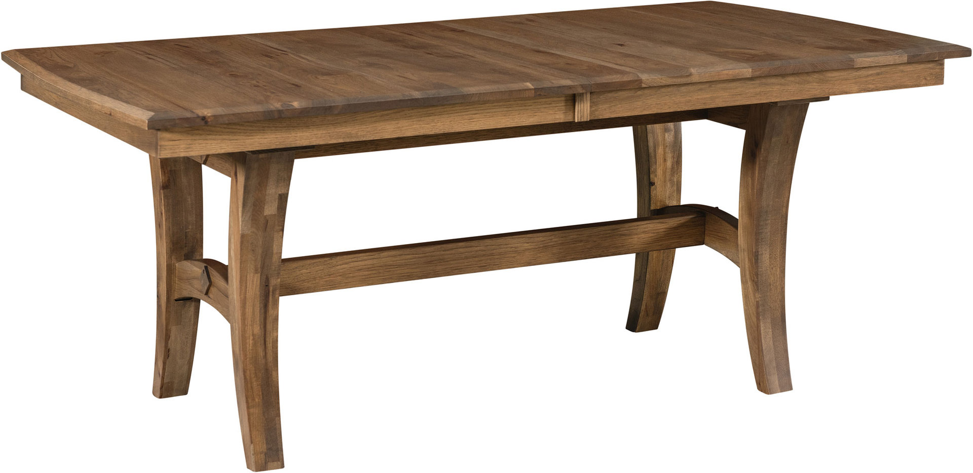 The Frisco Trestle Table Set presents a stately persona – with its arched trestles, diamond-shaped tenons, lumbar-friendly slats and scooped seat. Indeed, this set will add a look of distinction to your dining room. The table is available in several sizes. Also, the wooden geared equalizer slides make it easy to extend the table’s length by inserting one or more self-storing leaves. The chair features a scooped seat for comfort. And you can order side chairs and armchairs. Our Amish cabinetmakers build the set. And they use top hardwoods like oak and rustic hickory (shown with D22N08963 Sandstone stain). No wonder this set is so sturdy and heirloom-quality! Now, make it yours. Simply fill out the open (blank) fields below. Also, make sure you tell us your choices for wood species, finish and more. Or call 855-768-3270.