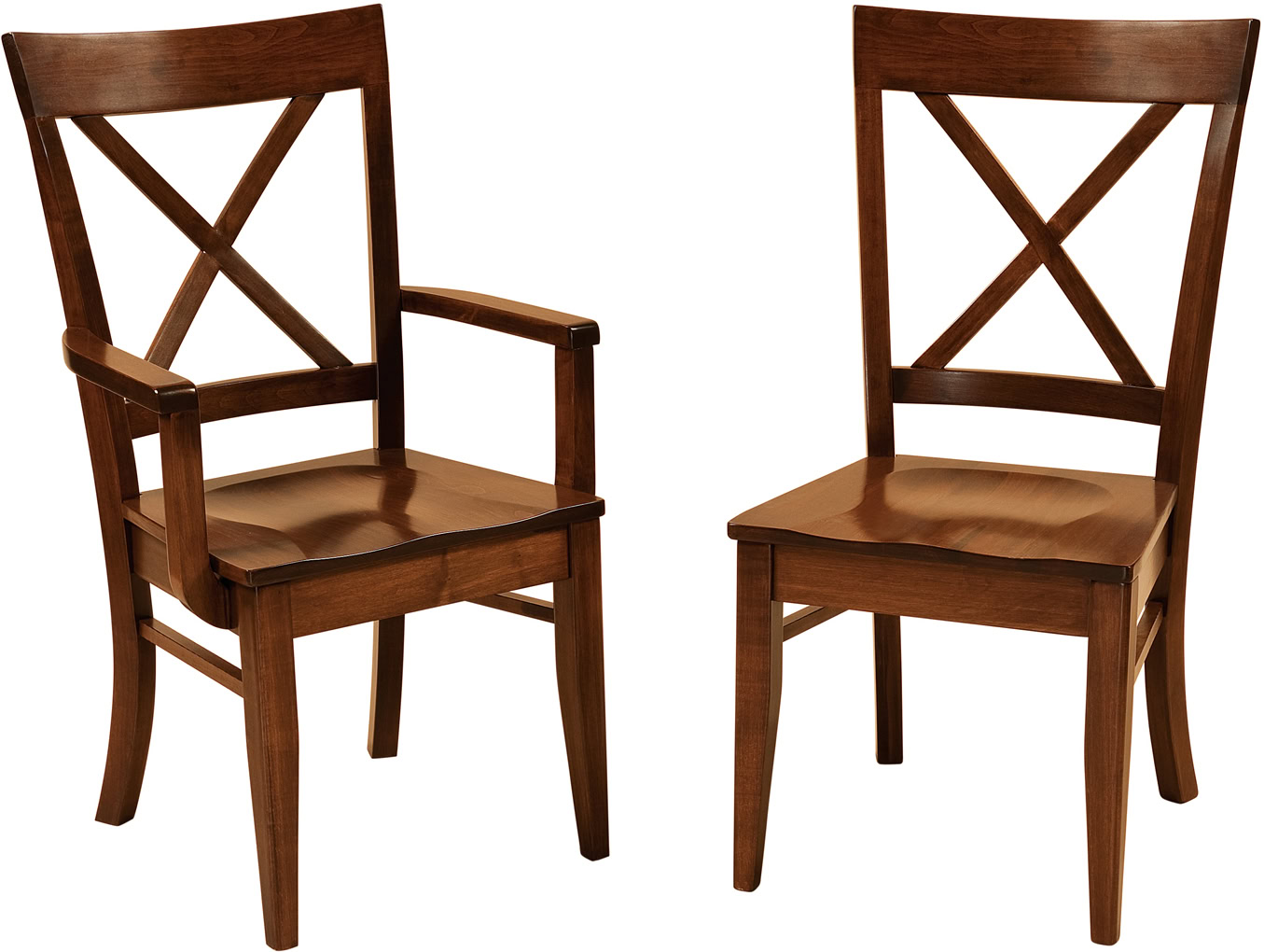 An X-slat back and curved rear legs mark the beautiful Frontier Chair. The hardwood featured on the Frontier Chair here is Brown Maple. Since all of our dining furniture is crafted in your selection of hardwood and stain color.