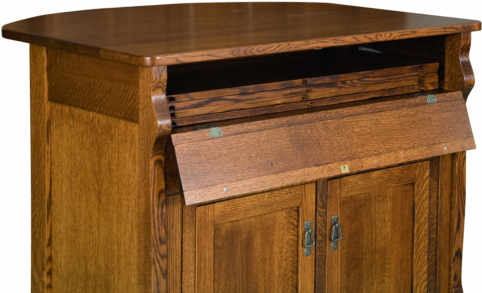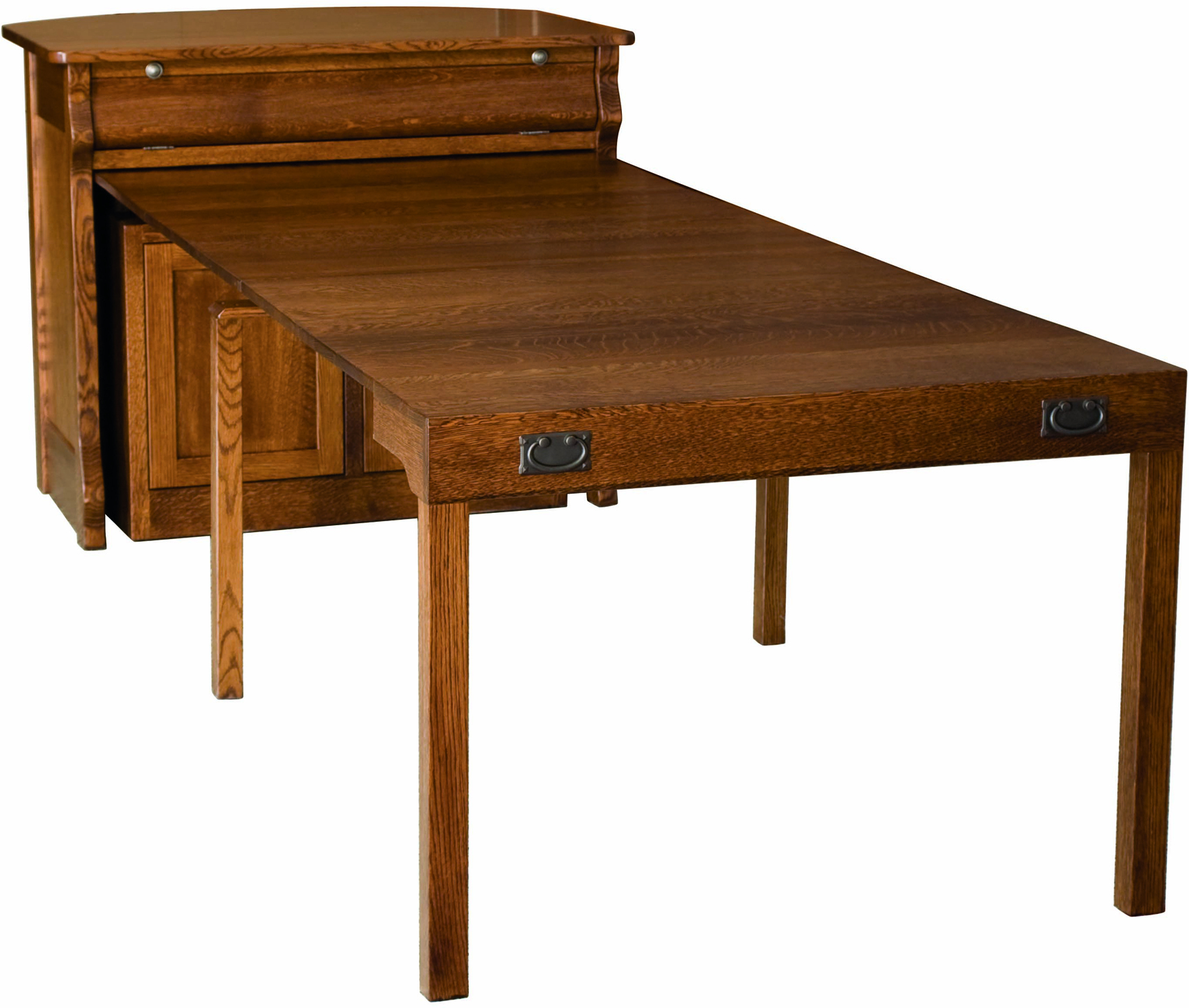 The Frontier Island Buffet gives you the freedom to have a sideboard, cupboard space and dining table — all in one unit! Indeed, the solid hardwood countertop is ideal for serving meals and drinks. Open the doors down below, and you’ll find an adjustable shelf and lots of storage space for your pantry items. Pull on the two drop-down pieces of hardware, and out comes a table! Casters make it easy to pull out the table. Open what appears to be the top drawer. And you’ll find leaves for added seating space. Our Amish cabinetmakers build the kitchen island from top hardwoods like quarter-sawn white oak (shown). No wonder the piece is sturdy — and heirloom-quality. Now, make it uniquely yours. Simply complete the customizing fields below. Also, make sure you include your choices for wood species, finish and more. Or call 855-768-3270.