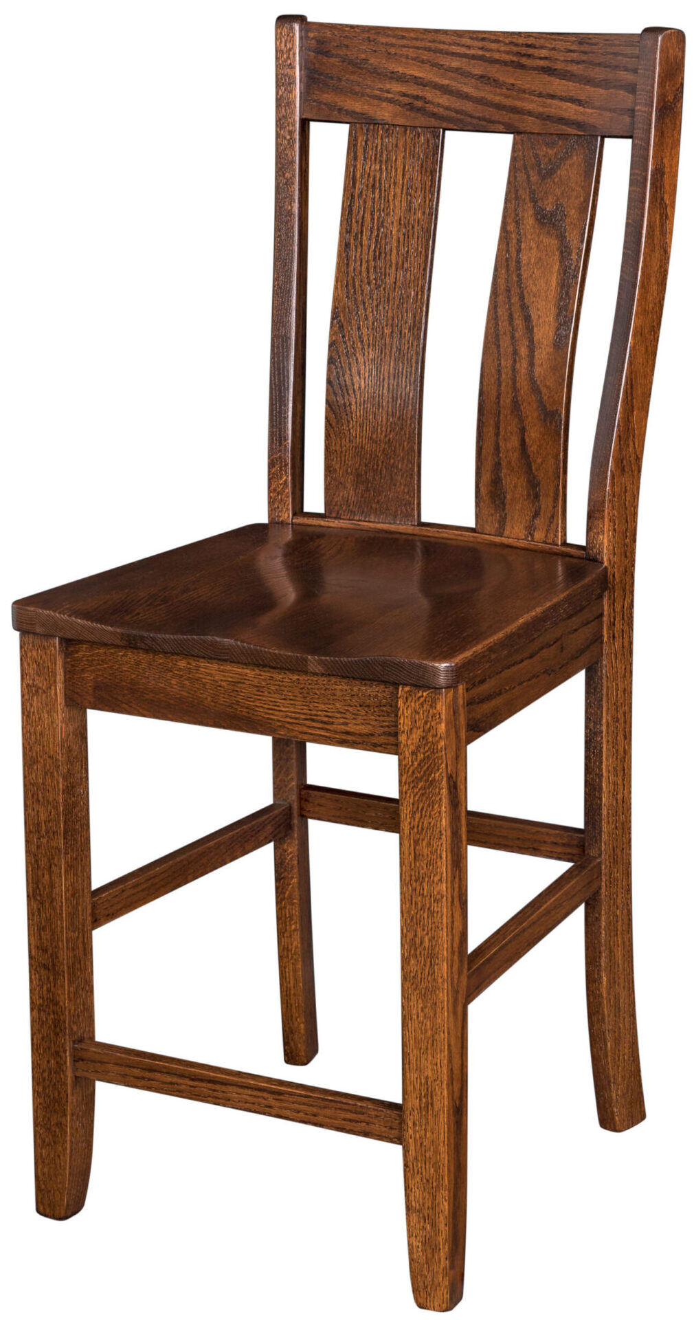 A simple, yet attractive, design plus fine Amish cabinetry catch the eye. This is the Garrison Bar Stool. What a lovely piece to grace your breakfast counter, island kitchen or in-home bar! The wide, curved slats provide great back support. While the saddle scoop seat enhances comfort. Want even more comfort? Request a padded seat finished in fabric or leather. Also, you can order your stools in your choice of stationary and/or swivel designs. Our Amish cabinetmakers build the bar stool. And they use top hardwoods like cherry. maple and oak (shown with Light Asbury Stain). No wonder the chair is so sturdy and heirloom-quality! Now, make it yours. Simply fill out the customizing fields below. Also, make sure you include your choices for wood species, finish and more. Or call 855-768-3270.