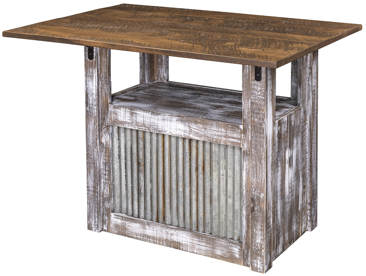 As a food prep and serving station, the Glendale Kitchen Island is as practical, rustic and durable as it gets! The hefty tabletop is ideal for preparing delicious meals and snacks. While the countertop below, plus the cabinet space behind the double doors have lots of room for storing pantry items. Rustic features abound. Notice the visible saw marks and the antique-style finish. Also the visible tenons and metal insert on the back side of the unit. Our Amish cabinetmakers build the kitchen island from all new pine wood. So, it’s sturdy and heirloom-quality. Now, make this kitchen island yours. Simply fill out the customization fields below. Also, make sure you tell us your choices for wood species, finish and more. Or call 855-768-3270.