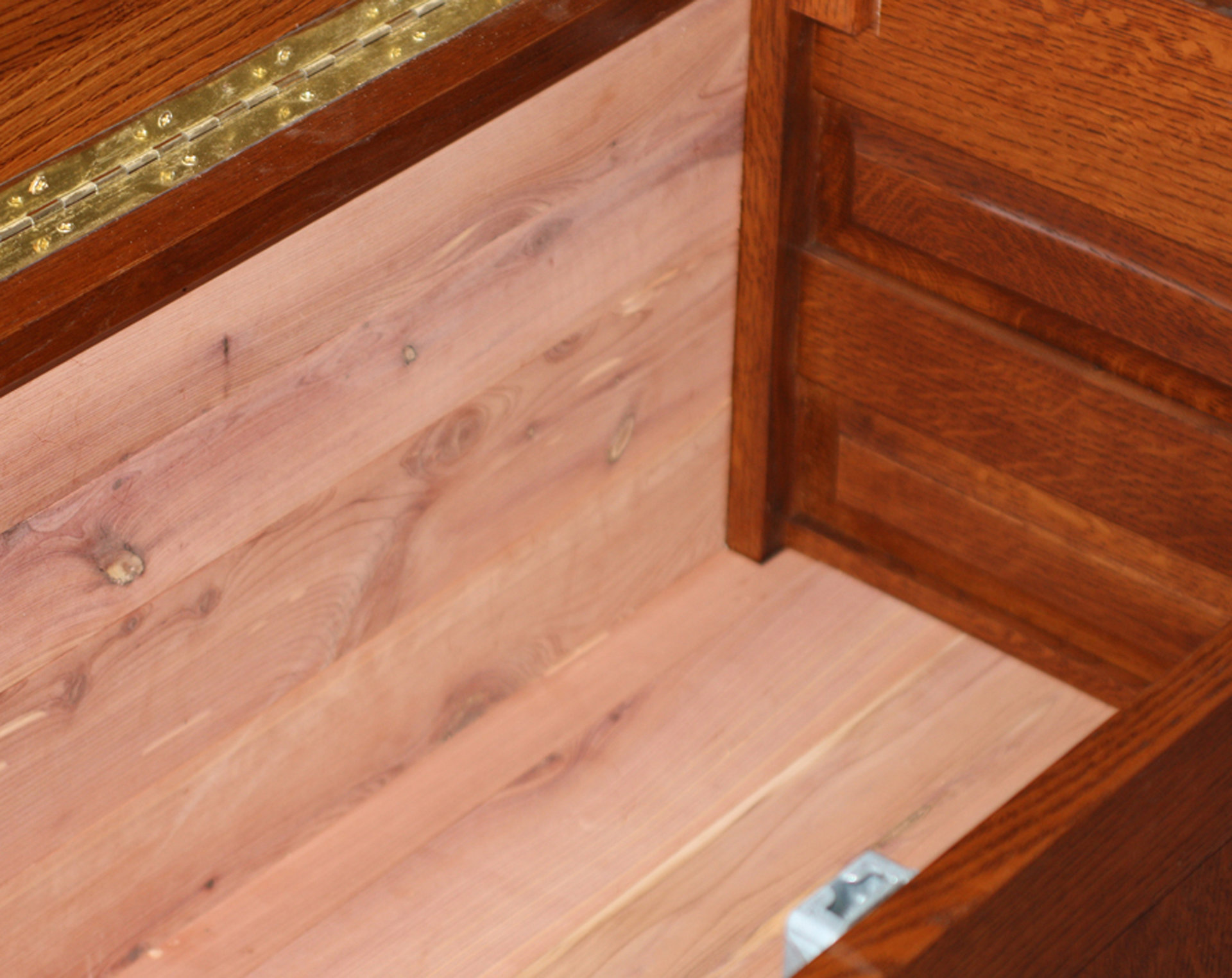 The Granny Mission Blanket Chest boasts solid construction and a classic Mission style with its reversed raised panel sides. It is sure to become a family heirloom that your grandchildren will be proud to inherit. It is the perfect place to store all of those precious keepsakes you’re not sure where to put. With its cedar lined bottom and back it may be where you want to store your wool sweaters so the moths don’t get to them. Add the optional cushion top and this Granny Mission Blanket Chest will become a functional piece of furniture that is sure to be used for multiple purposes. It is shown here is quarter-sawn white oak, but you can choose the wood species and stain that best coordinates with your home décor.