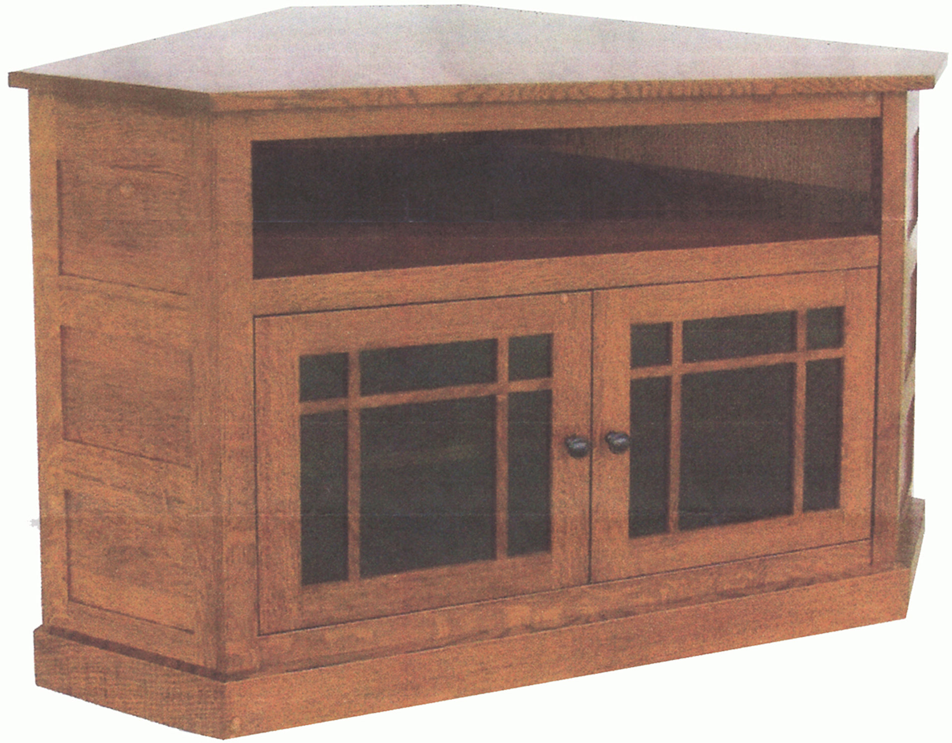 Be sure to contact Brandenberry Furniture via phone or e-mail with any questions or for help in customizing this Granny Mission Corner TV Cabinet to meet your needs.