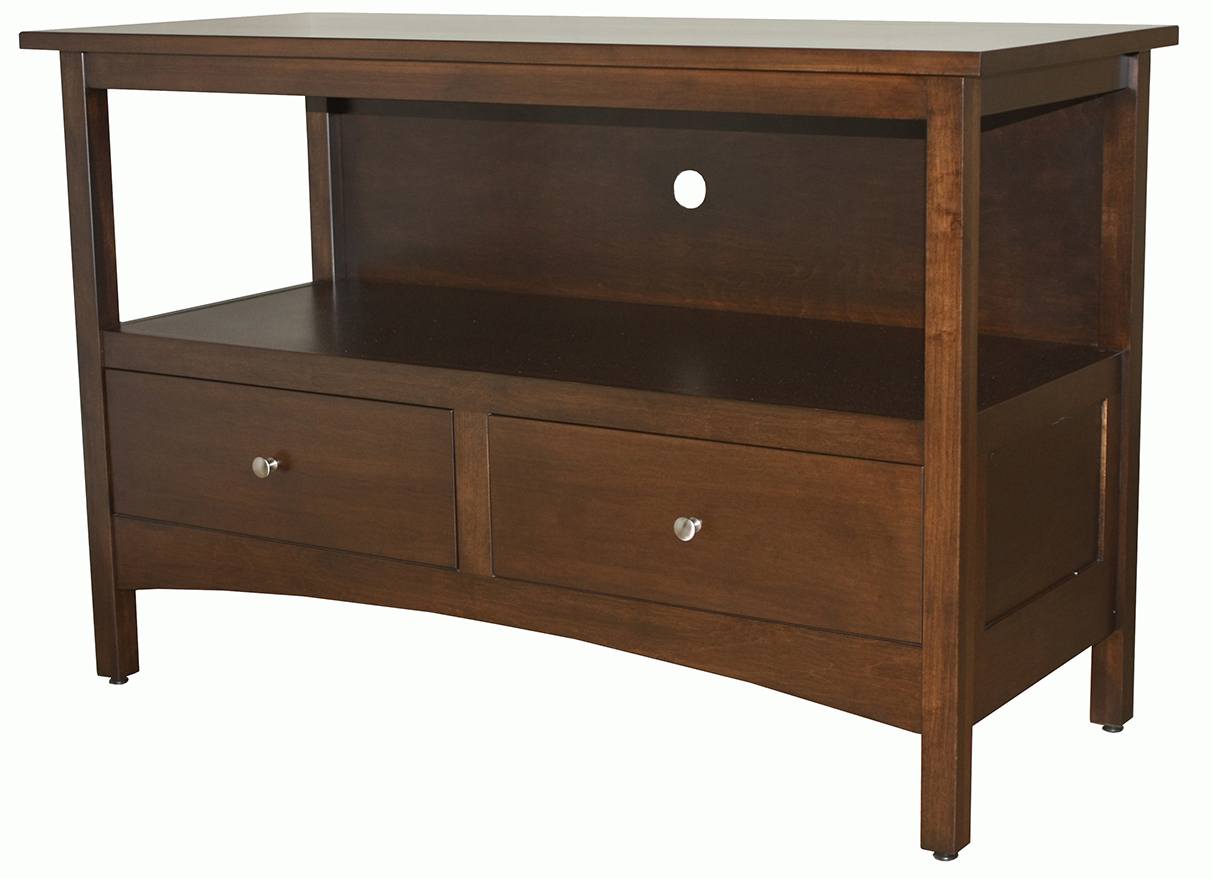 The simple lines of the Mission style combines with an open area to keep your entertainment devices close to hand. That’s the Granny Mission Open TV Cabinet. We offer the unit with empty shelf space or drawers at the bottom. The drawers open full-extension for easy access to everything inside. Also, you may order the cabinet in widths of 47 ½ inches, 60 ½ inches or 71 ½ inches. Your choice. Our Amish cabinetmakers build the TV stand. And they use top hardwoods like oak, cherry and maple. So, it’s sturdy and heirloom-quality. Now, make the unit uniquely yours. Simply complete the customizing fields below. Also, make sure you include your choices for wood species, finish and more. Or call 855-768-3270.