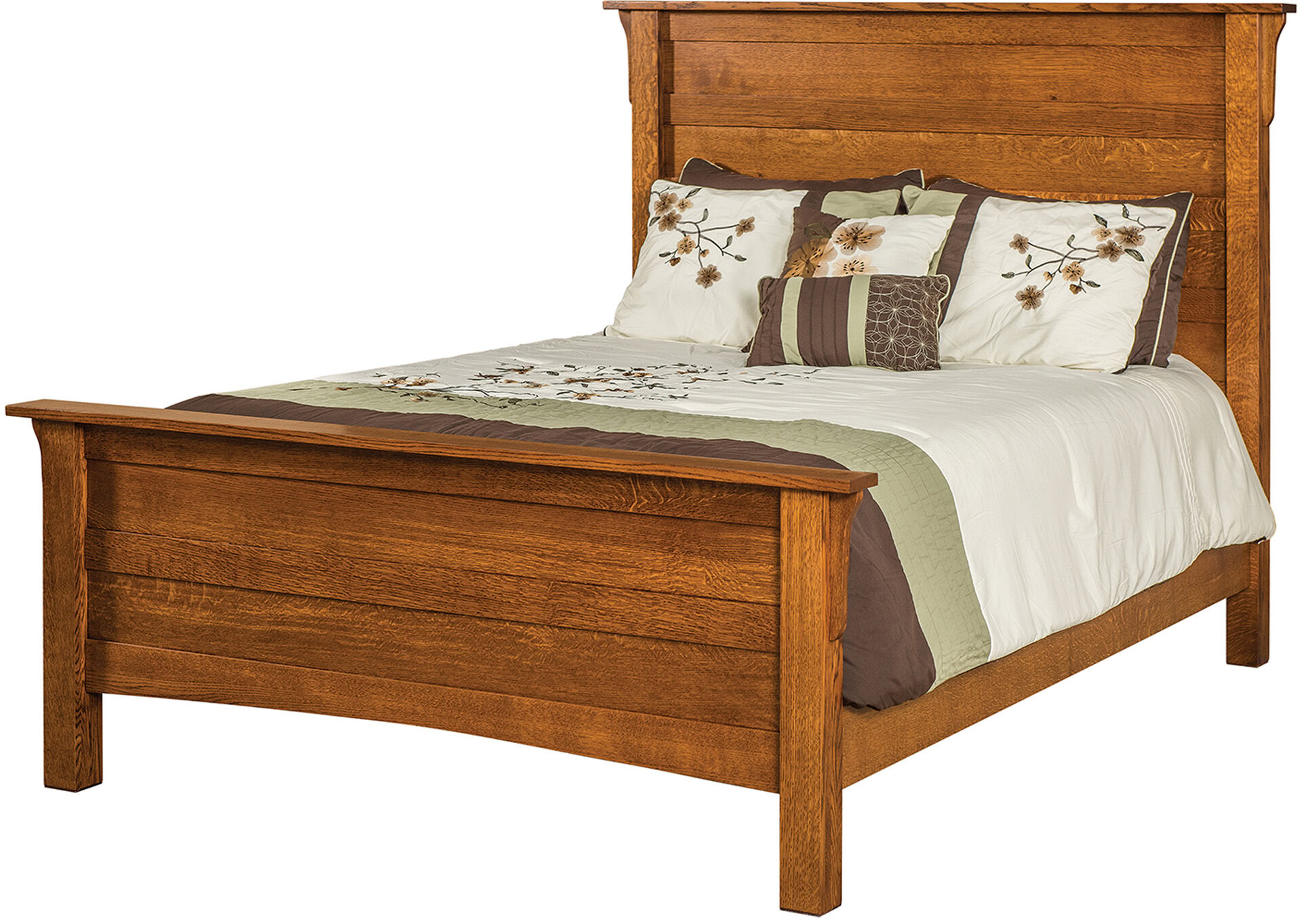 Horizontal planks between hefty posts adorned with decorative corbels give the Granny Mission Royal Bed its distinctive look. Imagine this handsome piece of fine furniture in your bedroom! Our Amish cabinetmakers build the bed. And they use top hardwoods, such as quarter-sawn white oak (shown). No wonder the bed is so sturdy and heirloom-quality! We offer the bed in king, queen, full and twin sizes. Now, make it yours. Simply complete the customizing fields below. Also, make sure you include your choices for wood species, finish and more. Or call 855-768-3270.