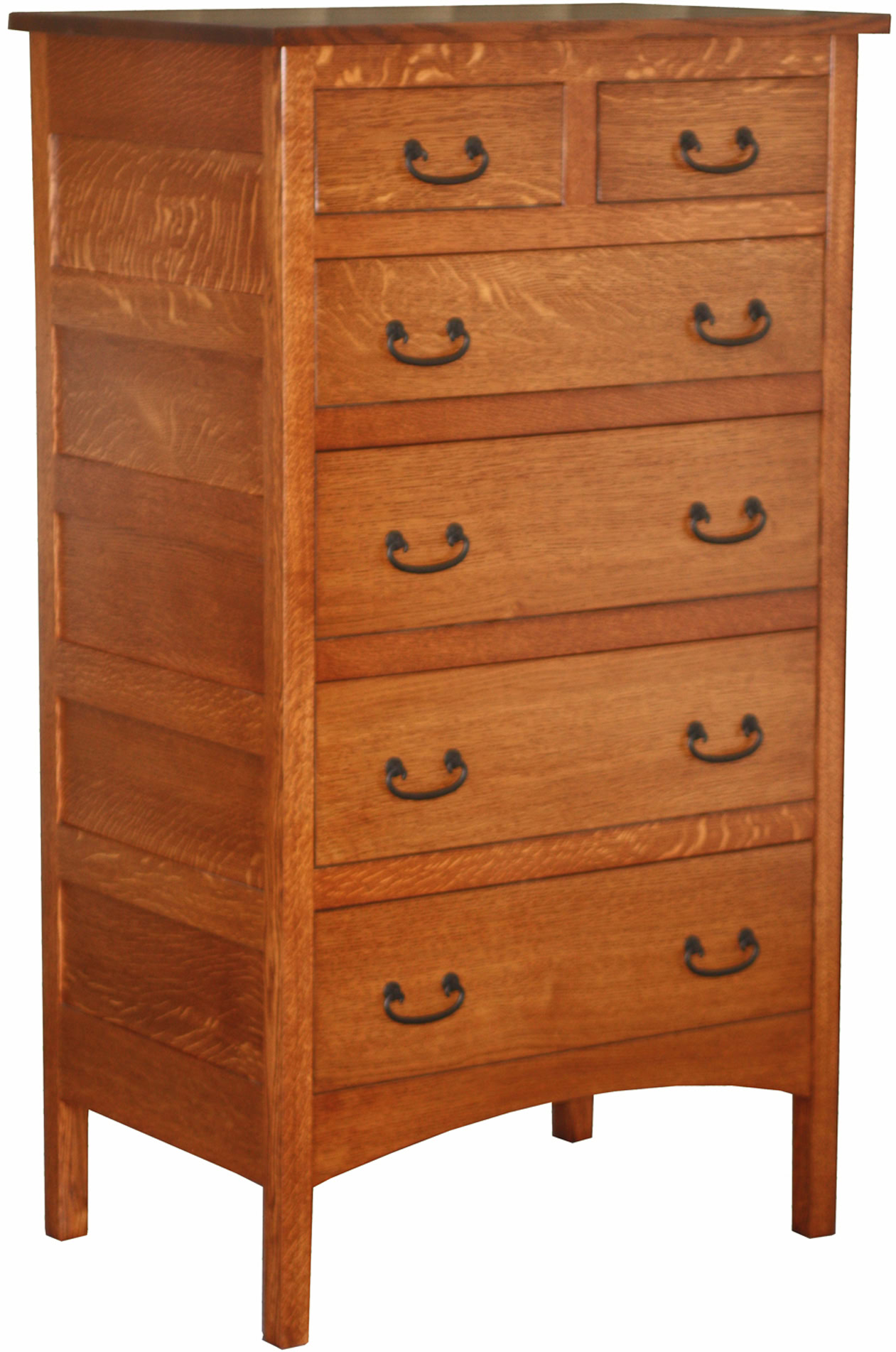This Granny Mission Six Drawer Chest is handcrafted by fine Amish artisans out of beautiful natural hardwoods. The reversed raised side panels, solid rectangular feet and hardware makes this a classic mission style chest. Each drawer is dovetailed and comes with full extension drawer slides, which makes opening and closing them a breeze for even a child. No more worrying about the drawers coming off the track. The Granny Mission Six Drawer Chest would look great in a child’s room, guest room or even your master suite. Be sure to order it in quarter-sawn white oak if you like the look that is shown here or customize it by choosing the wood species and stain color that matches your home décor.