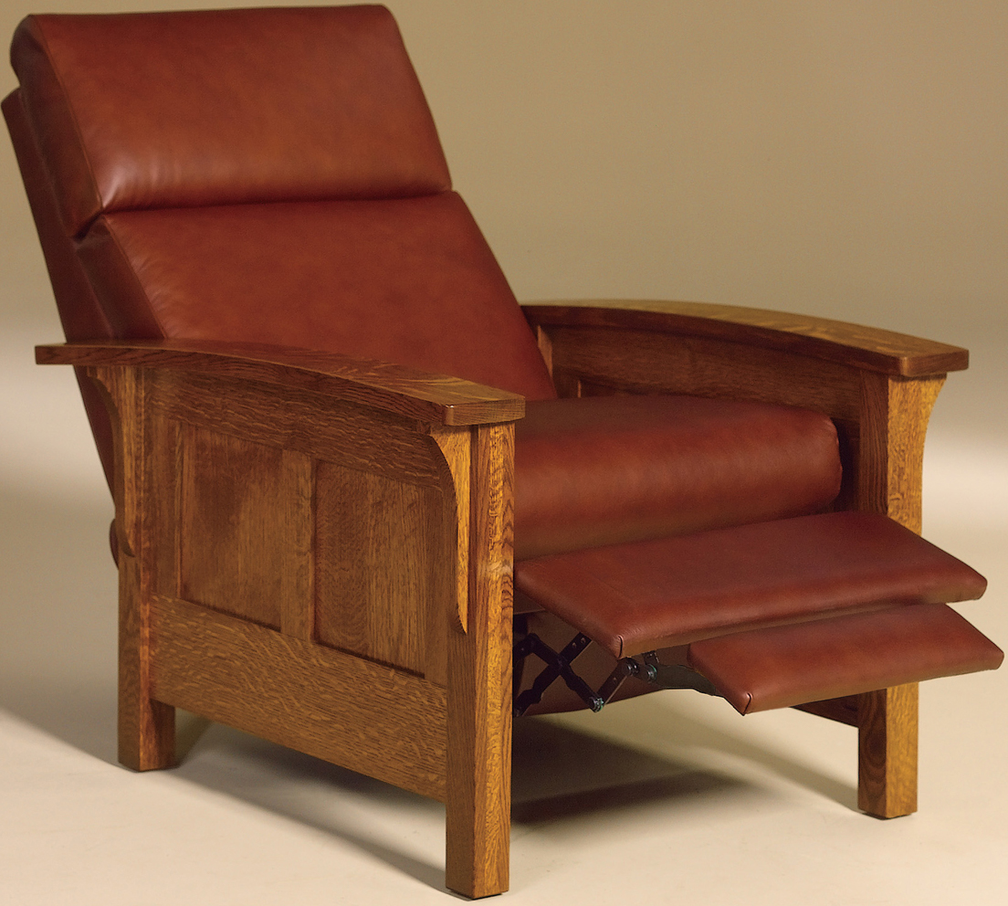 This Heartland Panel Mission Recliner with curved arms and panel sides will help you recline back with your feet up and relieve stress from the day.