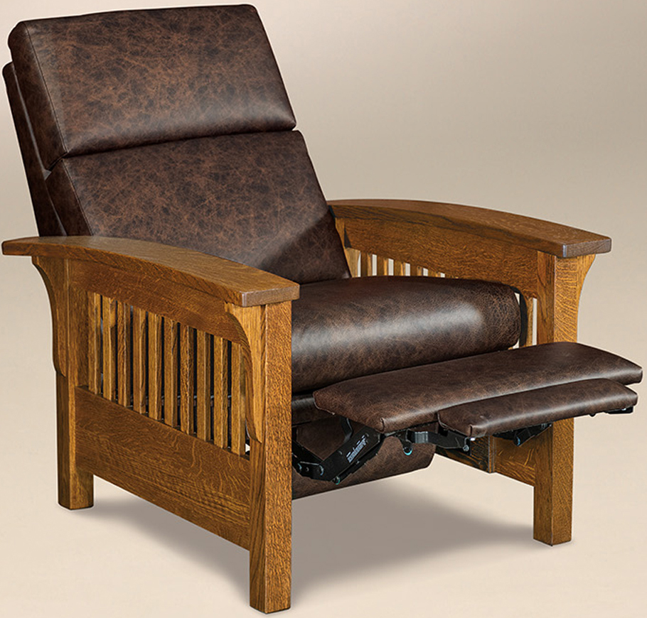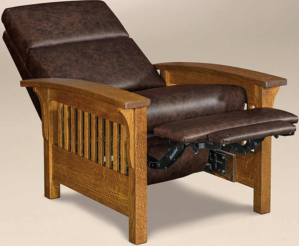 Stretch out and unwind in this mission style Heartland Slat Recliner featuring Mission Slats and leather cover.