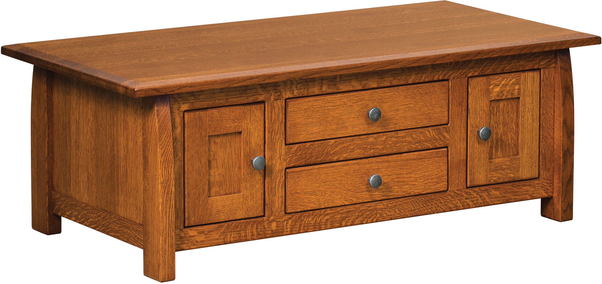 When it comes to enclosed coffee tables, none surpasses the Henderson Cabinet Coffee Table in looks, features, or construction. Check out its wide feet and bowed stance. Also the flush drawers and doors. Plus the rustic hardware. What an elegant addition this coffee table will make to your upscale living room. The drawers open full extension. So you’ll enjoy easy access to everything inside. Even items at the back. While the dovetail drawer joints excel in strength. What’s more, the doors close with a gentle push. Our Amish craftsmen build the Henderson Cabinet Coffee Table. And they use top regional hardwoods. Such as maple and quarter-sawn oak (shown with Michael’s Cherry Stain). No wonder the coffee table is so sturdy. Durable. Plus heirloom-quality! Now, make it yours. Simply complete the customizing fields below. Also, make sure you include your choices for wood species, finish, and more. Or call 855-768-3270.