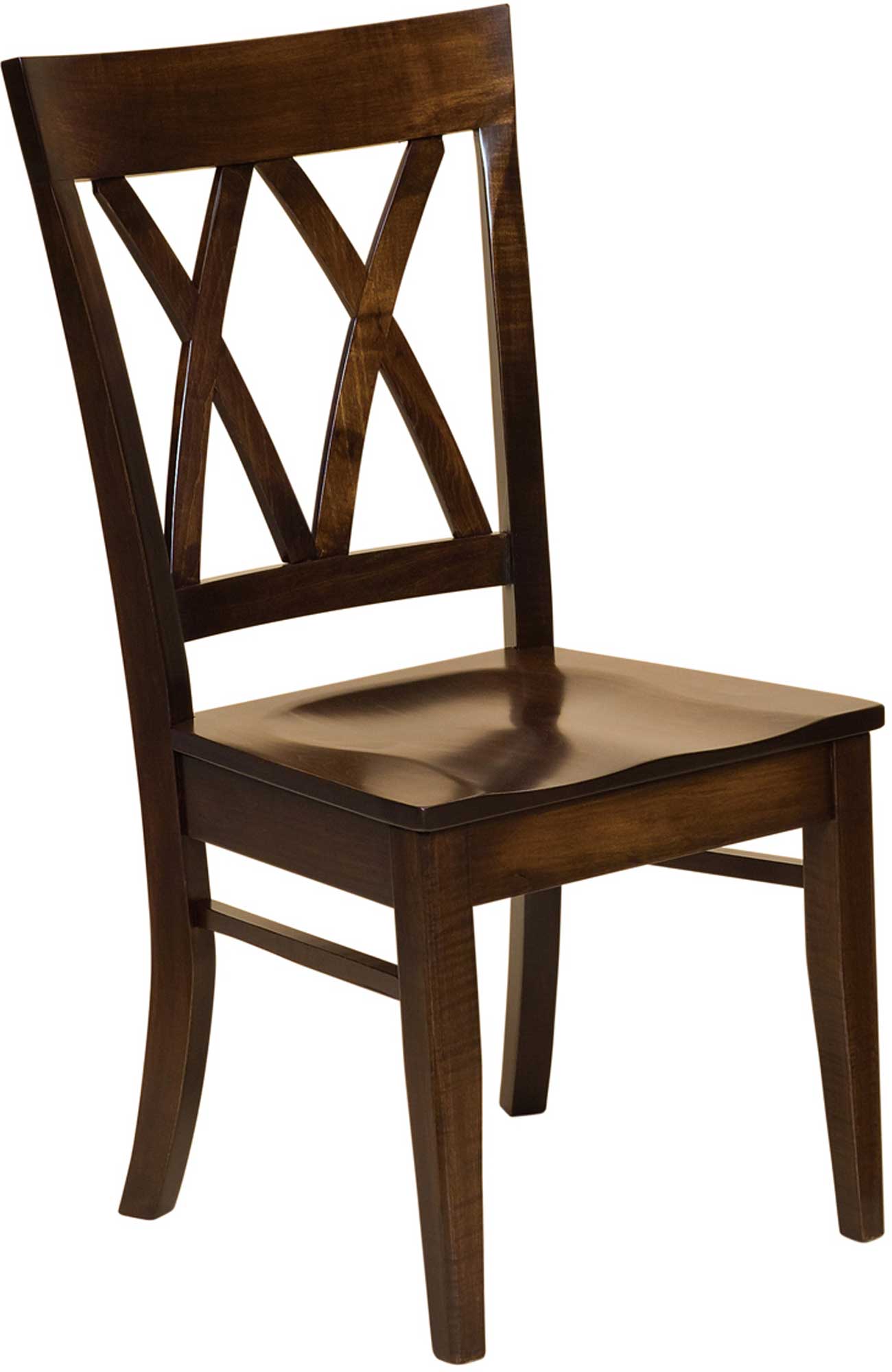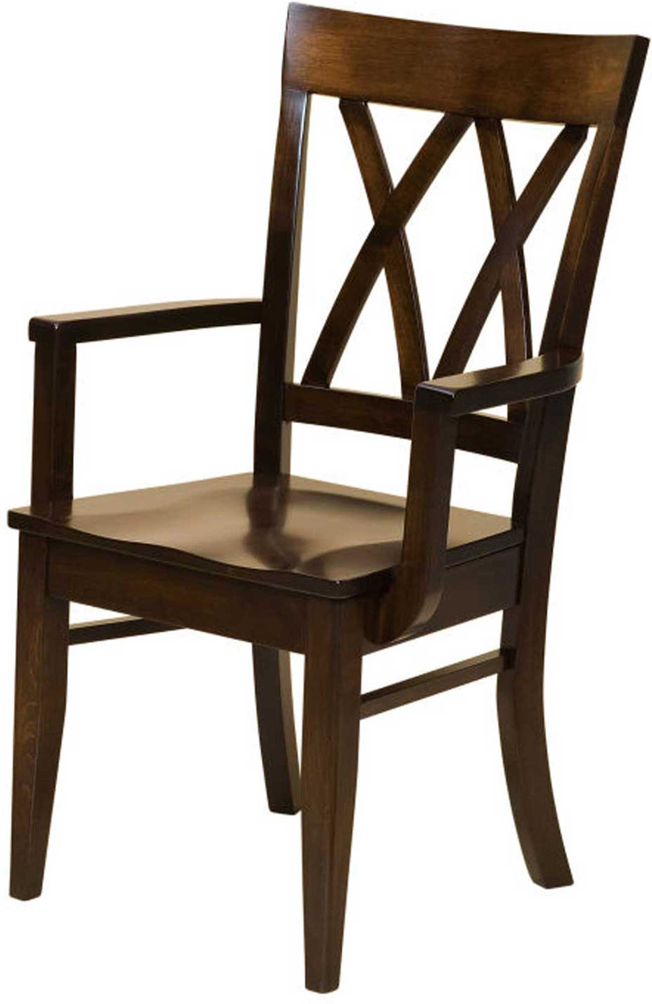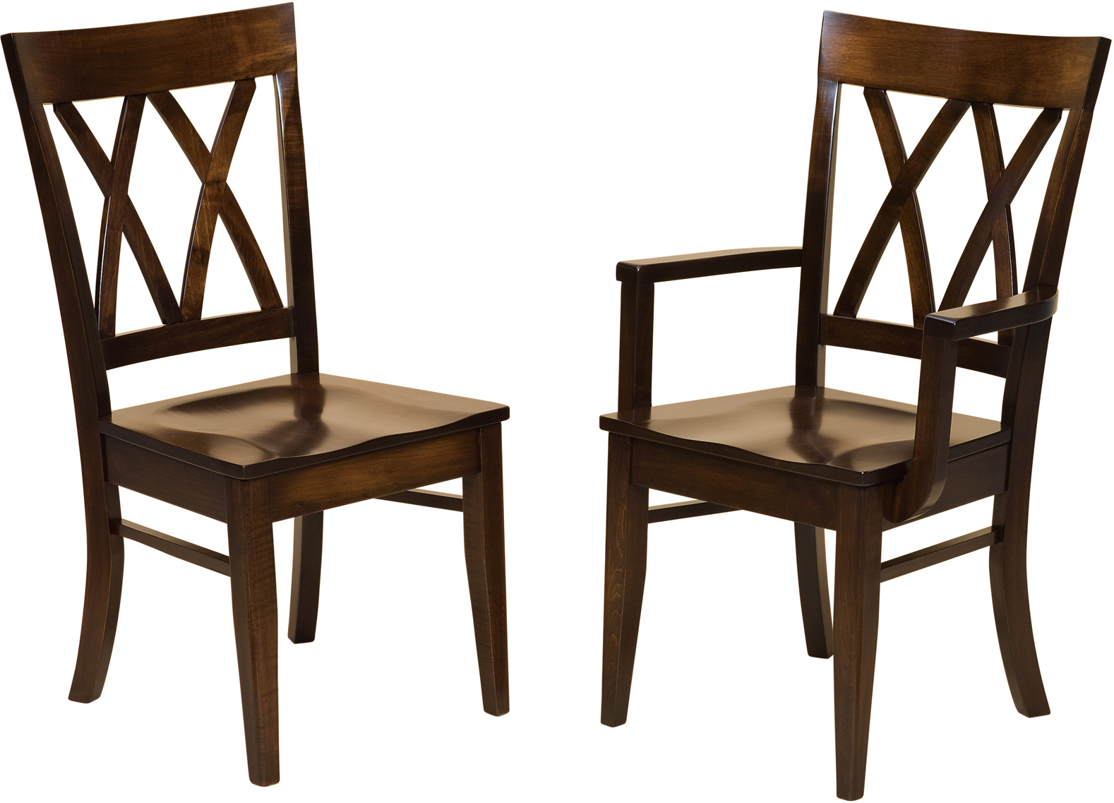 Fine woodwork in the backs of the Herrington Chair adds a beautiful touch. With its unique criss-cross X pattern and curved legs. The rich finish of the Herrington Chair is shown in Brown Maple with Rich Tobacco Stain but it can be customized in your selection of hardwood and stain color. It is available with or without arms.