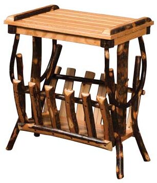 A slatted top and natural hickory accents highlight the Hickory End Table with Magazine Rack.