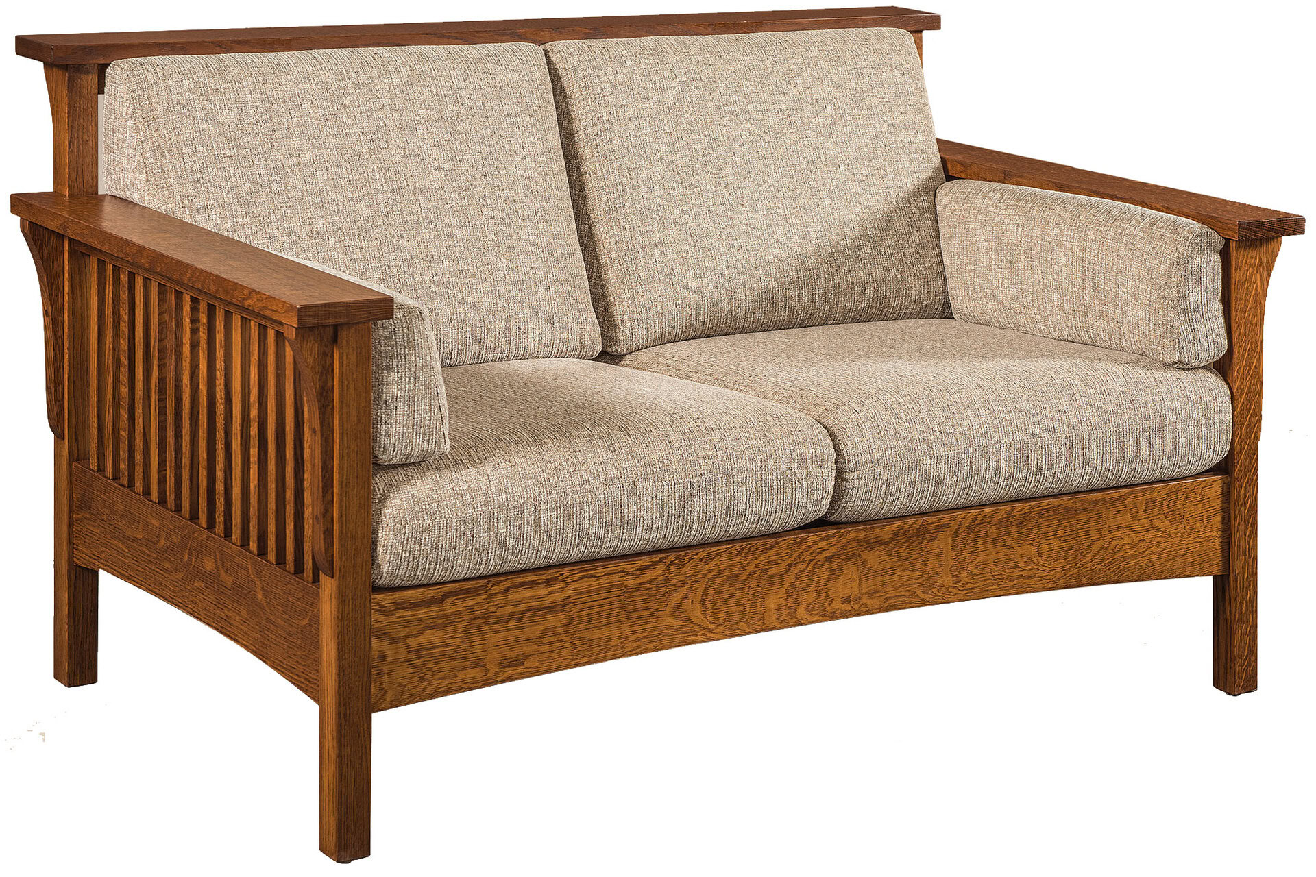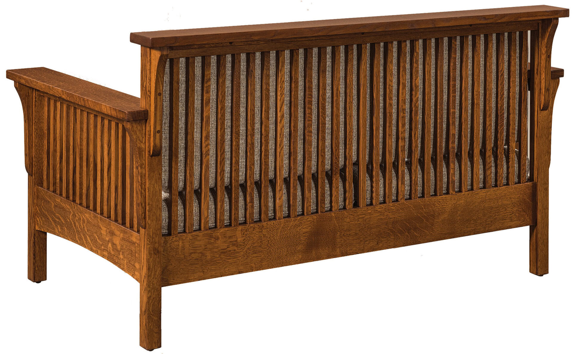 Skilled craftsmen designed the Highback Slat Loveseat with a classic Mission Style. Featuring mission slats and corbels on each corner, this unique loveseat will look great in your Living Room. Constructed from the finest hardwoods, this sturdy loveseat is sure to withstand hours of comfort for years to come. With custom options, you can create the perfect loveseat for your home. One that matches your personal style.