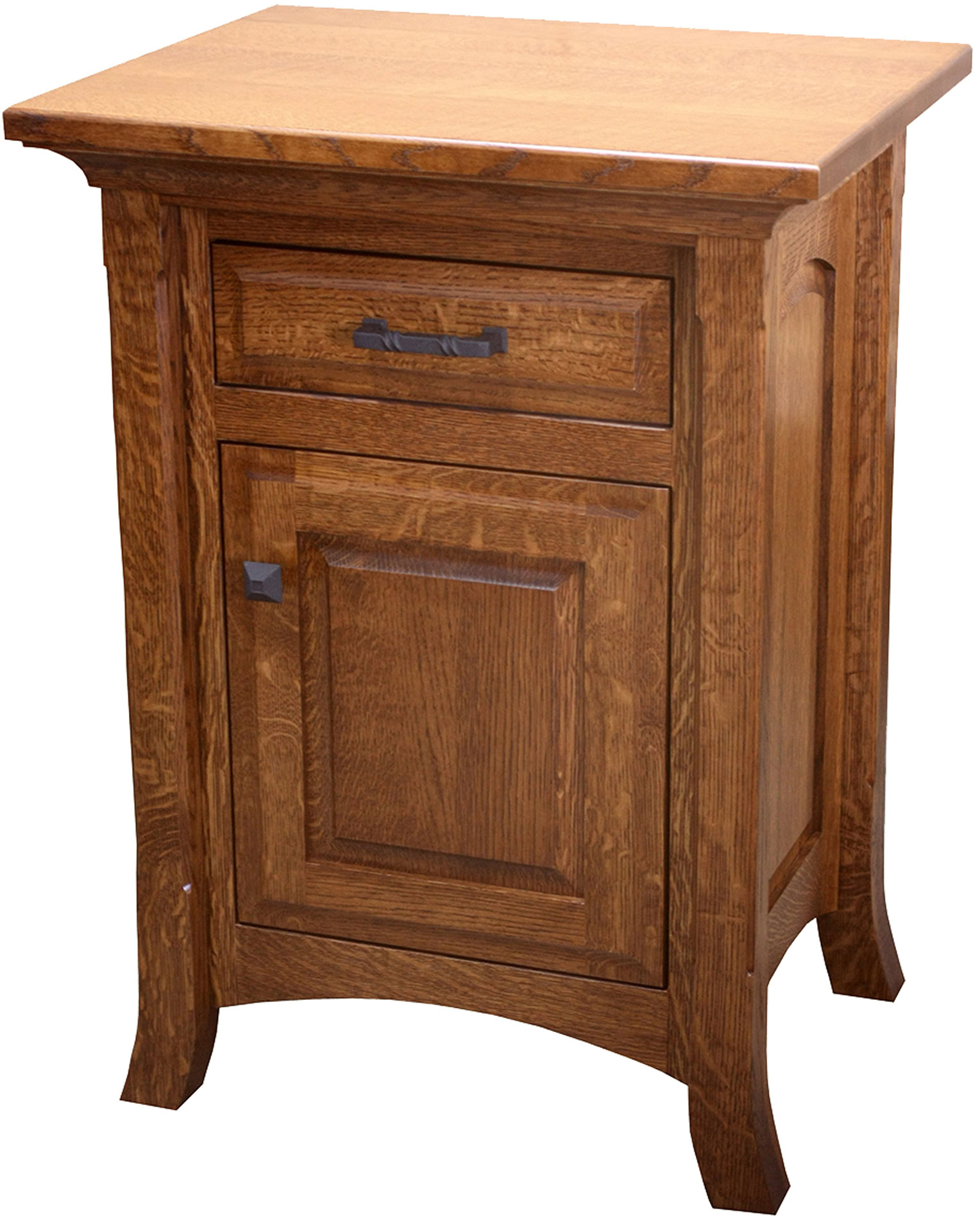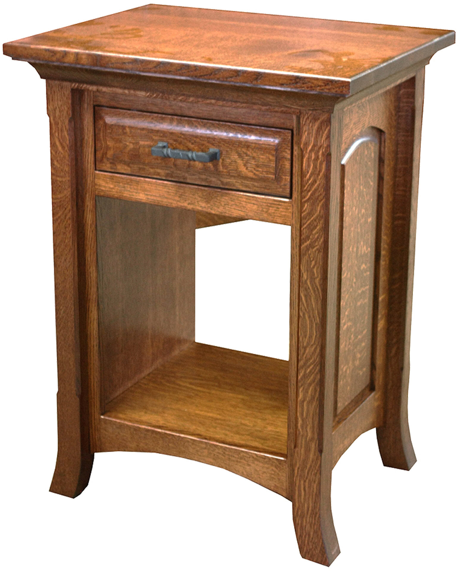 Curved legs and raised panel sides. Also solid hardwood construction. These features set the Homestead Narrow Nightstand apart from the pack. What’s more, you can choose from a variety of configurations. Such as three drawers, a drawer and a door and a drawer with an open bottom. What’s more, the drawers open full-extension. So you’ll enjoy easy access to everything inside. Even items at the back. Amish artisans build each Homestead Narrow Nightstand. So it’s heirloom-quality. Now, make it yours. Simply complete the fields below. With your choices for wood specie. Finish. And more. Or call 855-768-3270.