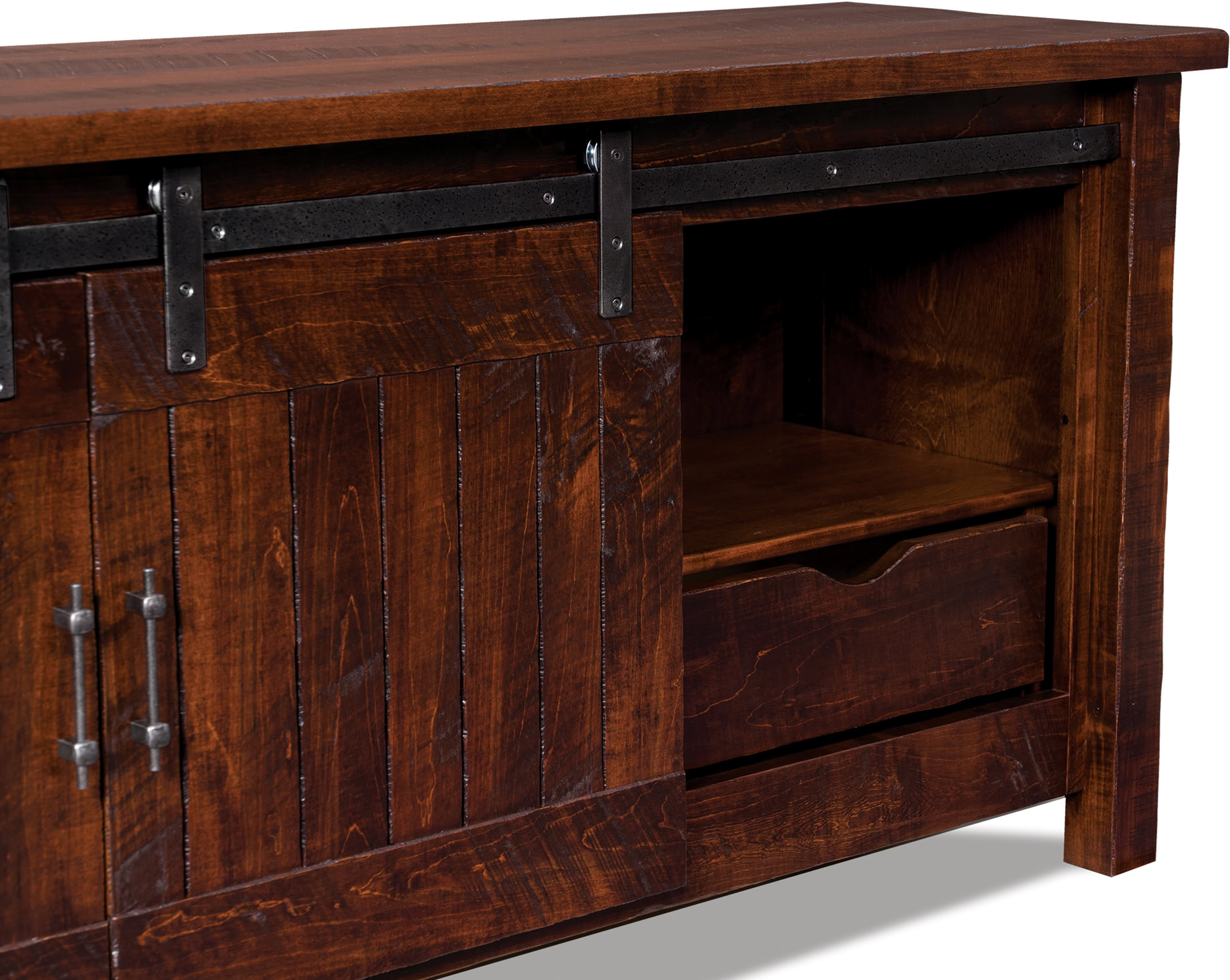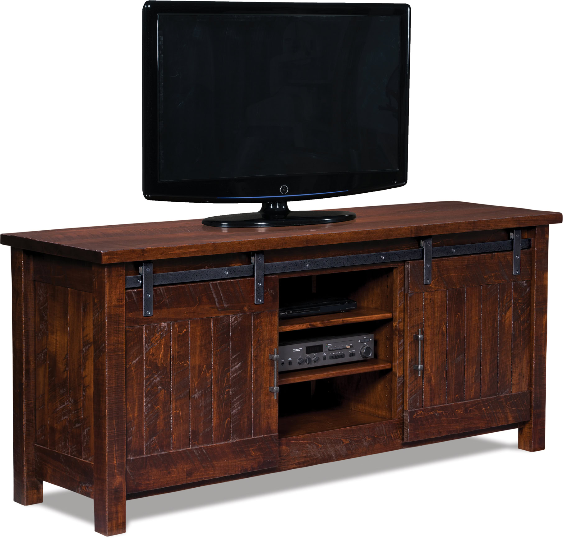 We load the Houston Media Stand with rustic character. This stand features barn doors with rough-sawn scars, natural aging, and antiqued pulls. Despite its rugged style, it also boasts elegance and the best materials available. Our Amish craftsmen ensure that this TV stand is one that you can plan on enjoying for decades to come.