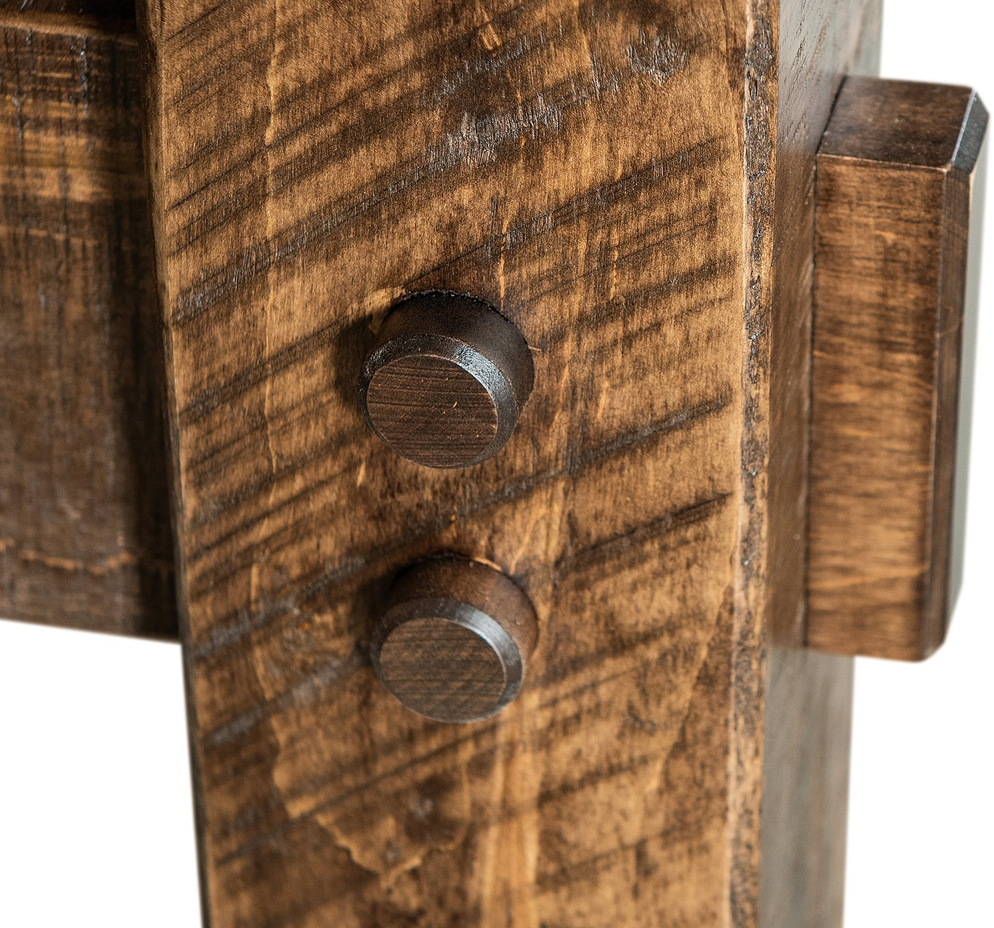 From its 1 3/4-inch rough-sawn top with a distressed edge to the dowels and tenons down below, the Houston Trestle Table is as ruggedly handsome as they come! Wish to entertain big? Simply request 12-inch leaves. Because extending the table is as simple as pulling on one end. Then inserting the leaves. The geared equalizer slides make it simple. In fact, the base does not move. (Ball bearing slides are also available.) And the table stores up to two leaves. Amish cabinetmakers handcraft each table from brown maple. No wonder the Houston Trestle Table is so sturdy. Durable. Also heirloom-quality! Ready to order? Click the “Customize this product” button below. Then, complete the “Customize Product” fields. Also click the “Get your customized quote” button. Or call 855-768-3270.