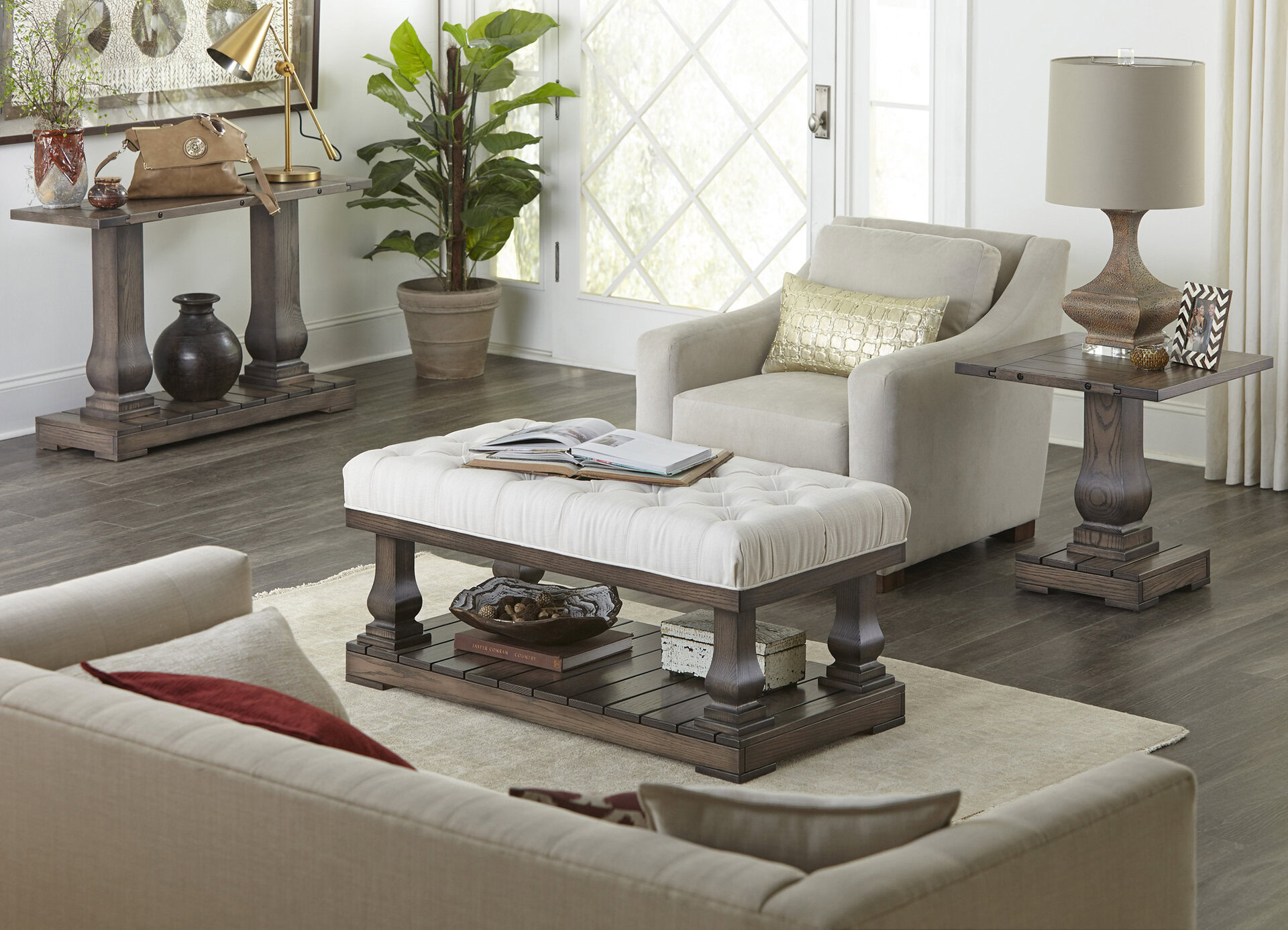 - Cushioned Coffee Table: 48 W x 24 D x 22 H