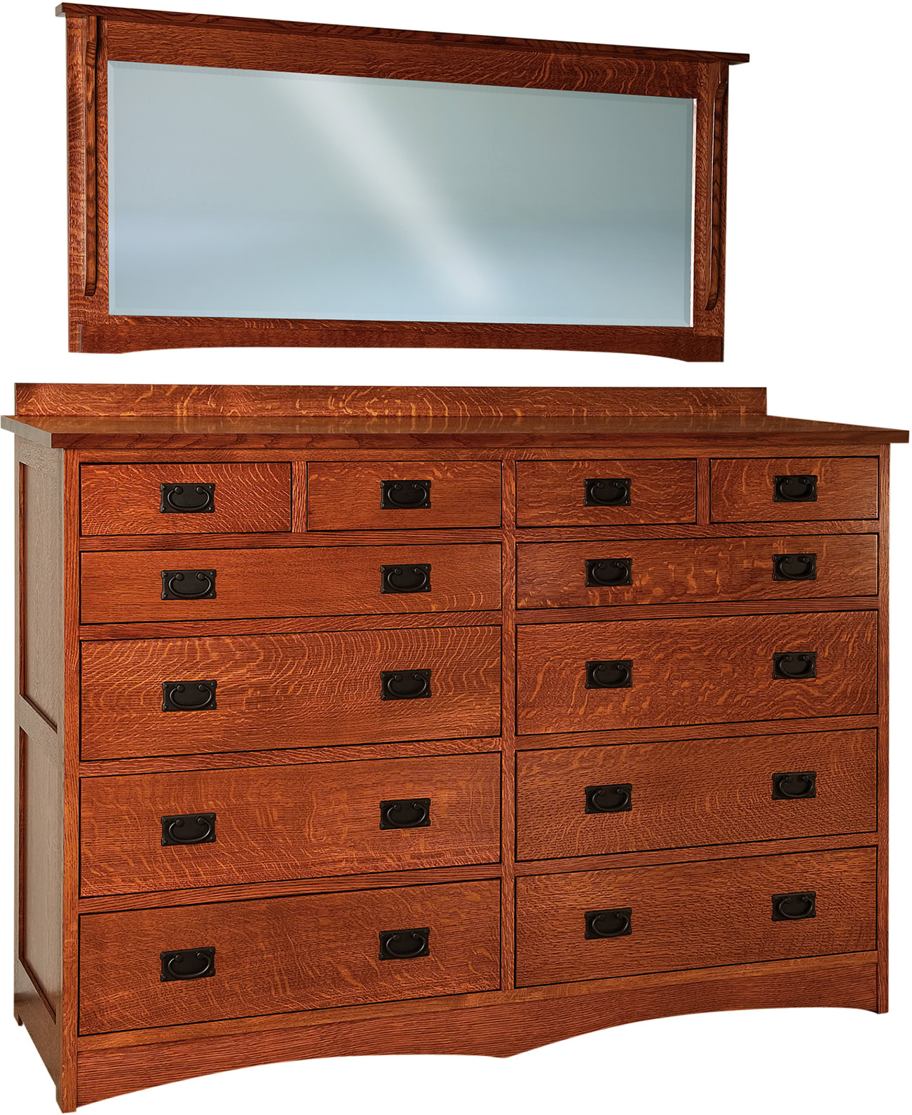 The Jacobson Wall Mirror is handcrafted by fine Amish artisans out of Quarter Sawn White Oak. The Jacobson Wall Mirror is shown with Michael’s Cherry Stain. But each piece of furniture we sell can be customized to meet your needs. See all of the hardwood and stain choices available. The Jacobson Wall Mirror features a dramatic arch along the bottom and wood corbels on the sides. This Amish-crafted Jacobson Wall Mirror is built with sturdy hardwoods in Northern Indiana’s Amish country.