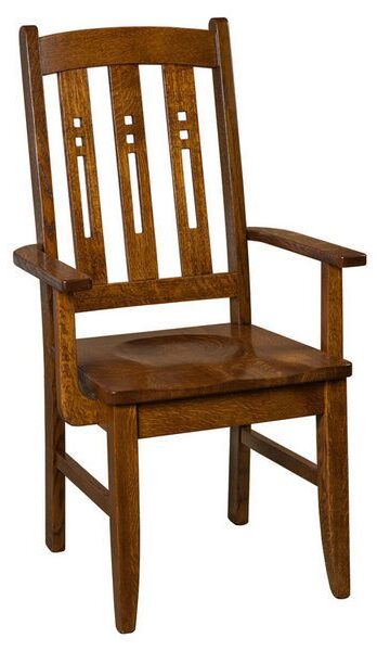 An elegant cut-out pattern in the backrest grabs your attention on the Jamestown Kitchen Chair. Indeed, our Amish cabinetmakers handcraft the chair from solid hardwood. No wonder it’s so good-looking, sturdy and heirloom-quality! Imagine surrounding your dining table with this lovely chair! The ornate slats provide good back support. While the saddle scoop seat enhances comfort. And for even more comfort, you can order a padded seat finished in fabric or leather. Also, we offer the chair in your choice of side chair and/or armchair. The chair is also available without the decorative cut-outs. Now, make it yours. Fill out the customizing fields below. Make sure to include your choices for wood species, finish and more. Or call 855-768-3270.