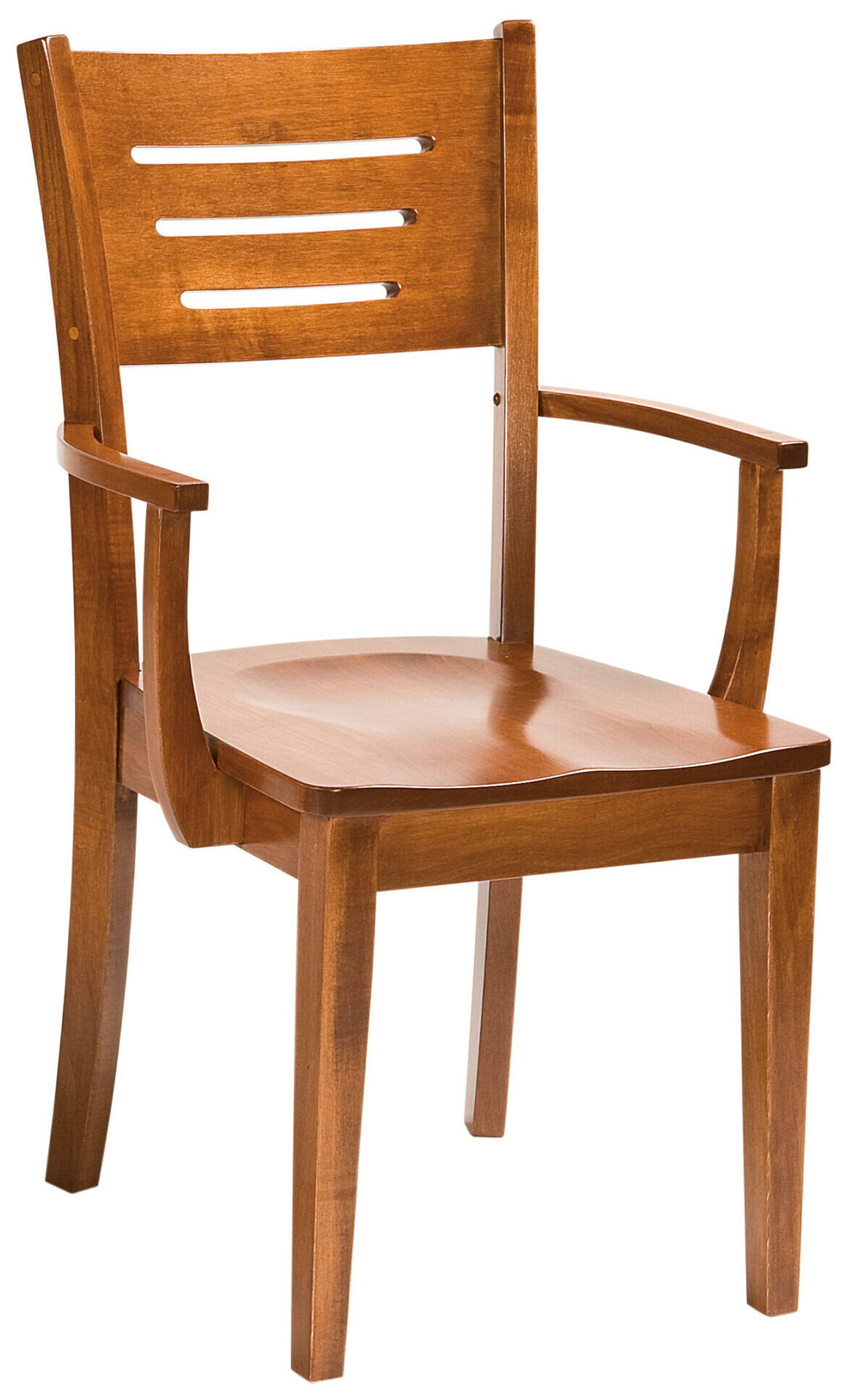 The Jansen Dining Chair brings an old world, eclectic feel to your dining space. Its back panel has horizontal cut outs that catch your eye’s attention. Clearly, this dining chair looks great in a modern or minimalist home. Decide whether you want side chairs, armchairs or a combination of both for your kitchen or dining room. You see it here in brown maple with autumn leaf stain. However, feel free to customize it to your choice of wood species and finish. Additionally, our Amish craftsmen make this Jansen Dining Chair entirely out of solid wood. Again, you can customize the seat with a cushion covered with fabric or leather. If you have a kitchen bar consider getting the Jansen Bar Chair for a perfectly coordinated room. Stop by our Brandenberry Furniture Store to sit on this Jansen Dining Chair and feel how comfortable it is in person.