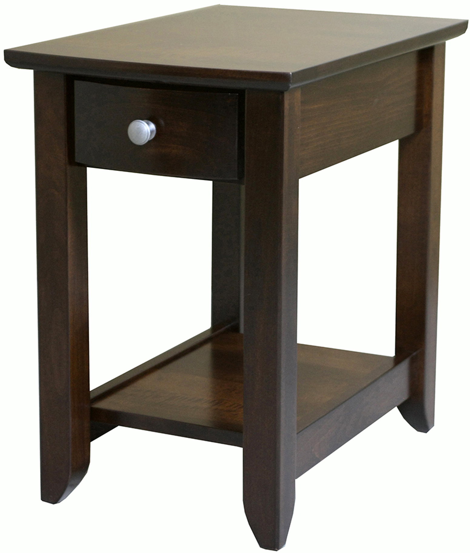The clean lines of the Mission style meet with an open design and solid hardwood Amish construction. That’s the Jaymont Open End Table. It’s the perfect choice for your living room. Because it should blend with your existing furniture. What’s more, the drawer opens full-extension. So getting items into and out of the drawer couldn’t be easier. While the dovetail drawer joints excel in strength. Amish cabinetmakers build each table. Also, they use top regional hardwoods. Like oak, maple and cherry. So the Jaymont Open End Table is heirloom-quality! Choices abound. Like a wider or narrower table. Or a power strip. Now, make it yours. Simply complete the customizing fields below. With your choices for wood specie, finish and more. Or call 855-768-3270.