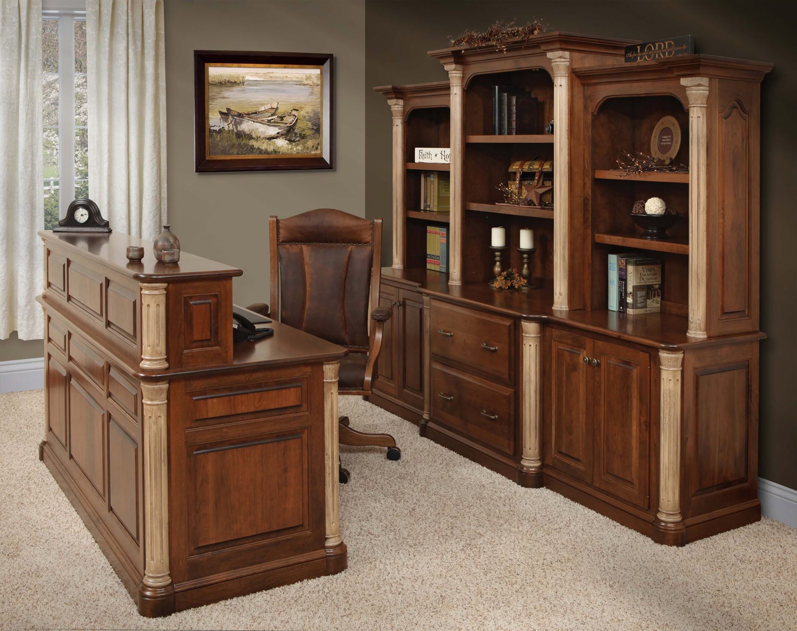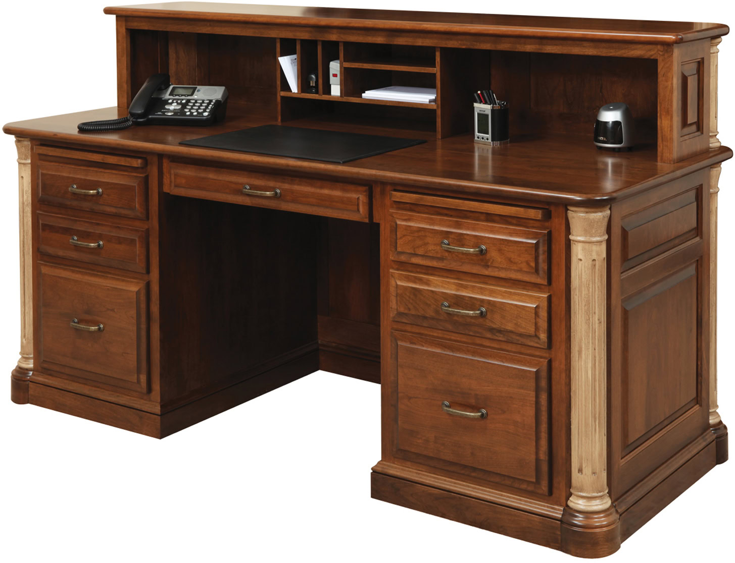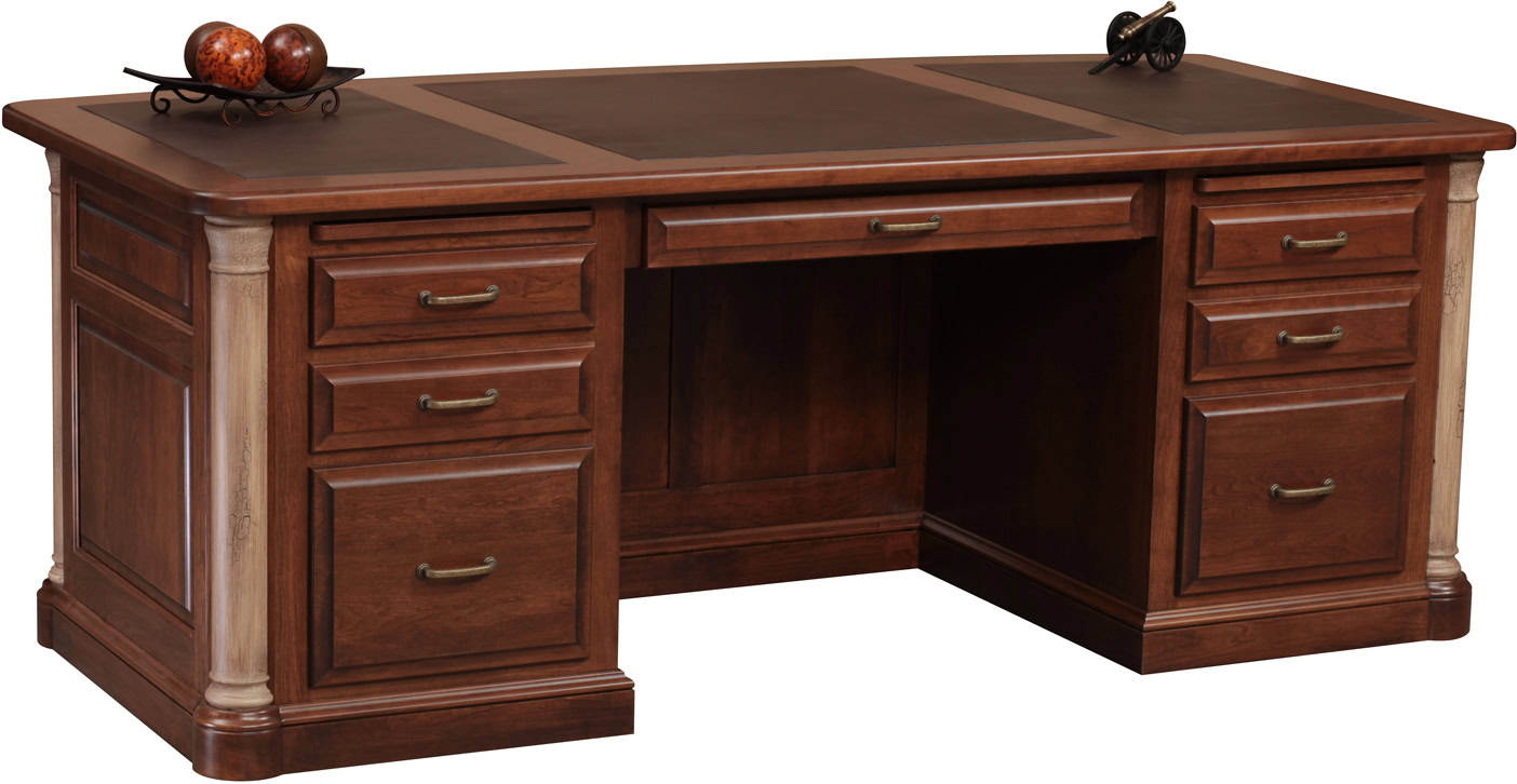 Skilled Amish artisans designed the Jefferson Premier Executive Desk XL with fluted columns and raised panel ends. Therefore creating a classic desk for your office. Constructed from solid hardwood, you can rest knowing this sturdy executive desk will last for years to come. Above all this desk is designed with two file drawers, four storage drawers, a pencil drawer, and two pull-out writing boards. So you will have ample space for all your office needs. If the elegance of this executive desk catches your eye take a look at our other Jefferson products.