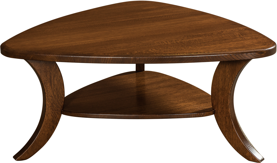 A triangular-shaped top and base along with curved legs give the Jessica Collection Coffee Table its exclusive look. So the table is sure to enhance the sophisticated vibe of your living room. Especially when you display elements like cut flowers and figurines on its 1 ¼-inch top. Our Amish artisans handcraft the Jessica Collection Coffee Table. Also, our builders use top regional hardwoods. Such as quarter-sawn oak (shown with Asbury Stain). What’s more, the Amish men draw from tried-and-proven woodworking skills handed down from their ancestors. No wonder the coffee table is so sturdy. Durable. Plus heirloom-quality! Now, make it yours. Simply complete the customizing fields below. Also, make sure you include your choices for wood species, finish, and more. Or call 855-768-3270.