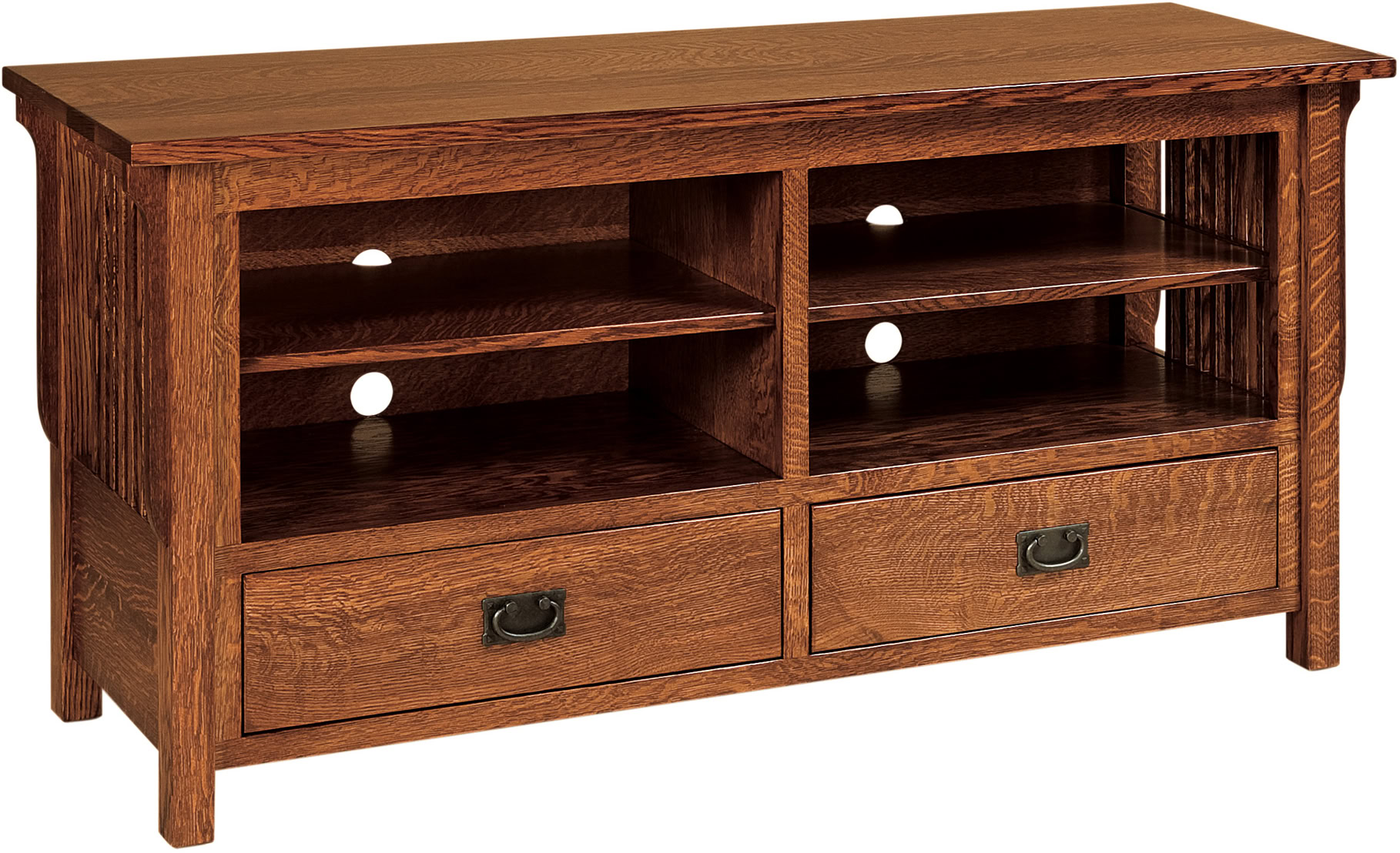 The rich country style of the Landmark Open TV Cabinet Collection is beautifully crafted Amish furniture. Made by hand to enhance the look of your home. The rich rustic look of the detailed finishing and the sturdy construction of this exceptional TV Cabinet creates a warm inviting atmosphere. Hence, perfect for any entertainment space. In addition, the collection is constructed with 1-inch solid wood tops and dovetailed maple drawers with premium soft-close under-mounts. The TV Cabinet will thrive in any living room. It features open space with a fixed shelf inside to hold and display your media equipment. Available in a 49 inch and 60-inch cabinet and it can be customized to meet your needs.