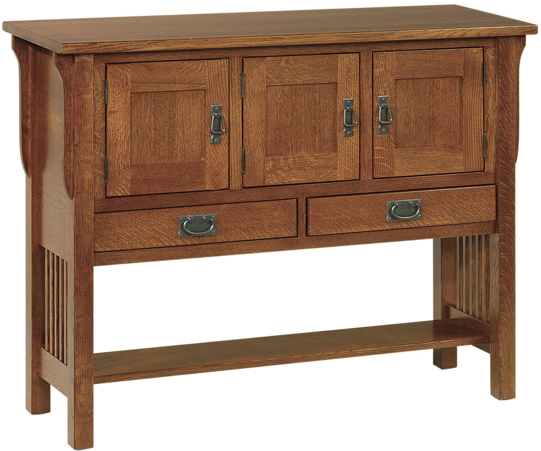Wood slats and corbel accents plus Mission-style hardware set the Landmark Sideboard Collection aside. What a showpiece of beauty and sophistication! We build the drawers with sturdy dovetail joints. Also, the drawers come with soft-close slides. And the door with soft-close hinges. So they close with a gentle push. Even the back is finished. That’s how much we focus on quality. Amish craftsmen custom-build each piece. Also, they use quality regional hardwoods. Like oak, maple and cherry. So the pieces are sturdy and durable. Plus heirloom-quality! Choose the two-door or three-door sideboard. Ready to order the Landmark Sideboard Collection? Click the “Customize this product” button below. Then, complete the “Customize Product” fields. Also click the “Get your customized quote” button.