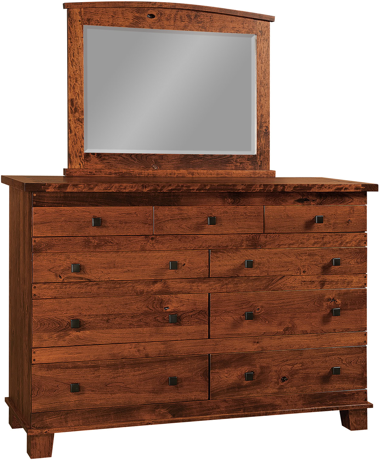 A rich wood finish accents the Larado Dresser Mirror. The Larado Dresser Mirror features the modern saw-cut plank top. The Larado Dresser Mirror is featured here in Rustic Cherry but can be customized in any hardwood and stain to meet your needs. See all of the hardwood, stain and hardware choices available. This Amish-crafted Larado Dresser Mirror is built with sturdy hardwoods in Northern Indiana’s Amish country and can be hung alone or paired with the rest of the Larado Bedroom Collection. We ship all of our products nationwide to your door or come and visit our showroom in Shipshewana, Indiana. For complete pricing information, please choose the options that best meet your needs and a furniture specialist will contact you, usually within 24 hours. Or if you just have a question not answered by our website, please complete the quote request or contact us via phone.