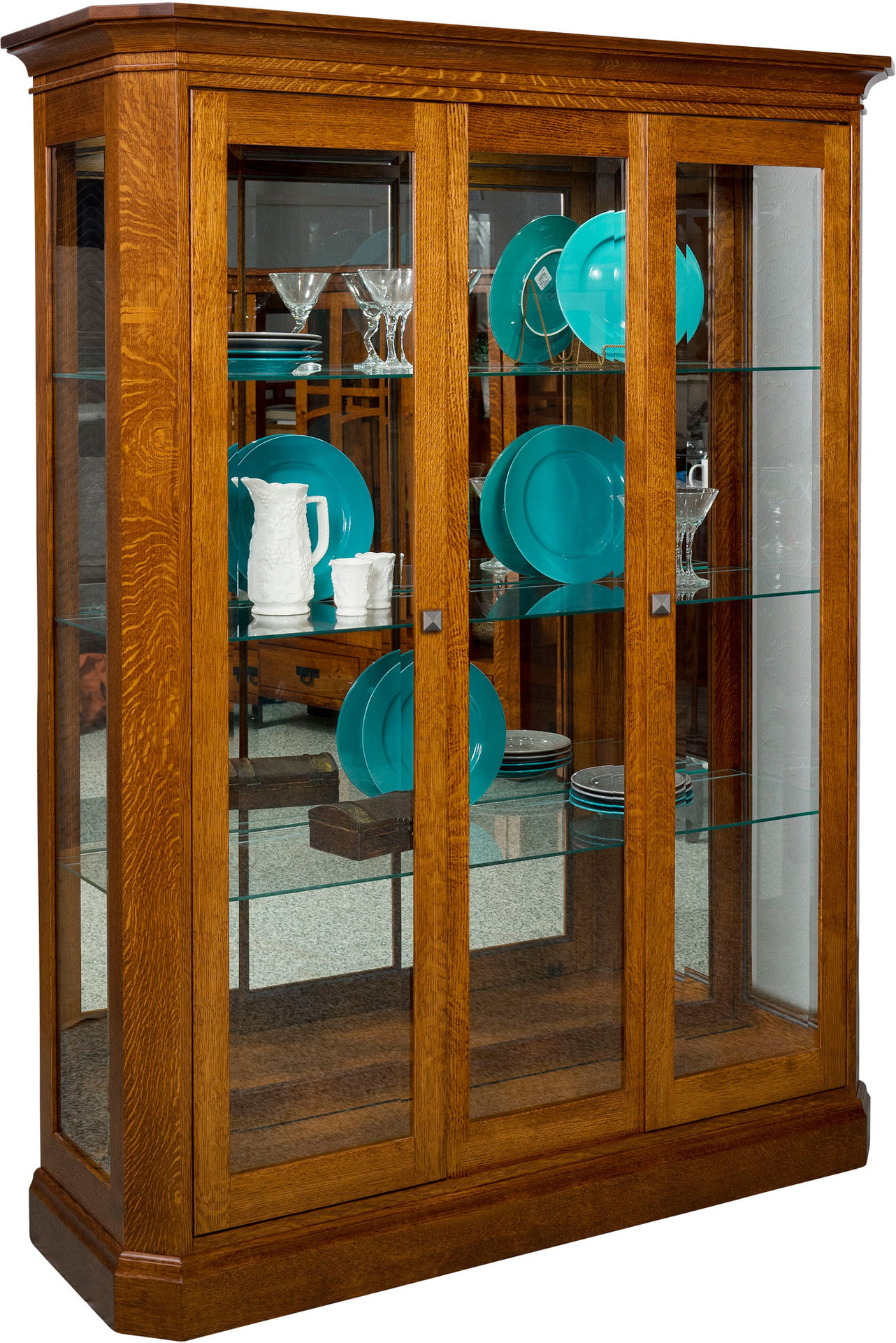 Presenting the ultimate cabinet for showing off your treasured keepsakes and fancy figurines: The Latonia Curio. Everything about this cabinet is designed to dazzle. From the ornate crown molding to the beveled glass doors and sides. The three glass shelves come with plate grooves so your lovely plates can stand tall. While the mirror back and LED lighting enhance the glow. You can choose a two-door or a three-door cabinet. Our Amish artisans build each curio cabinet from top hardwoods like quarter-sawn white oak (shown with Michael’s Cherry stain.) No wonder the curio is so durable, it’s heirloom-quality! Now, make it yours. Simply fill out the open (blank) fields below. Also, make sure you tell us your choices for wood species, finish and more. Or call 855-768-3270 today.