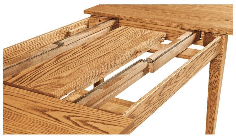 The Laurie’s Dining Room Table is a traditional leg table that our fine Amish artisans handcraft. It has a simple design with a 1-inch rectangular top, 4-inch straight skirt and 3″ x 3″ tapered legs. These legs remain stationary like a trestle table when the top opens. Additionally, the legs are mortised and tenoned to prevent them from rubbing against the top when you open the table to add more leaves. There is no more worrying about where you are going to store those cumbersome table leaves either. Thankfully, this table comes with a self-store compartment right within this Laurie’s Table. So, this is the perfect table to have if you are used to having visitors stop in unexpectedly for an impromptu dinner. All you will have to worry about is ordering in pizza. Making room for the guests will definitely be a breeze with this table.