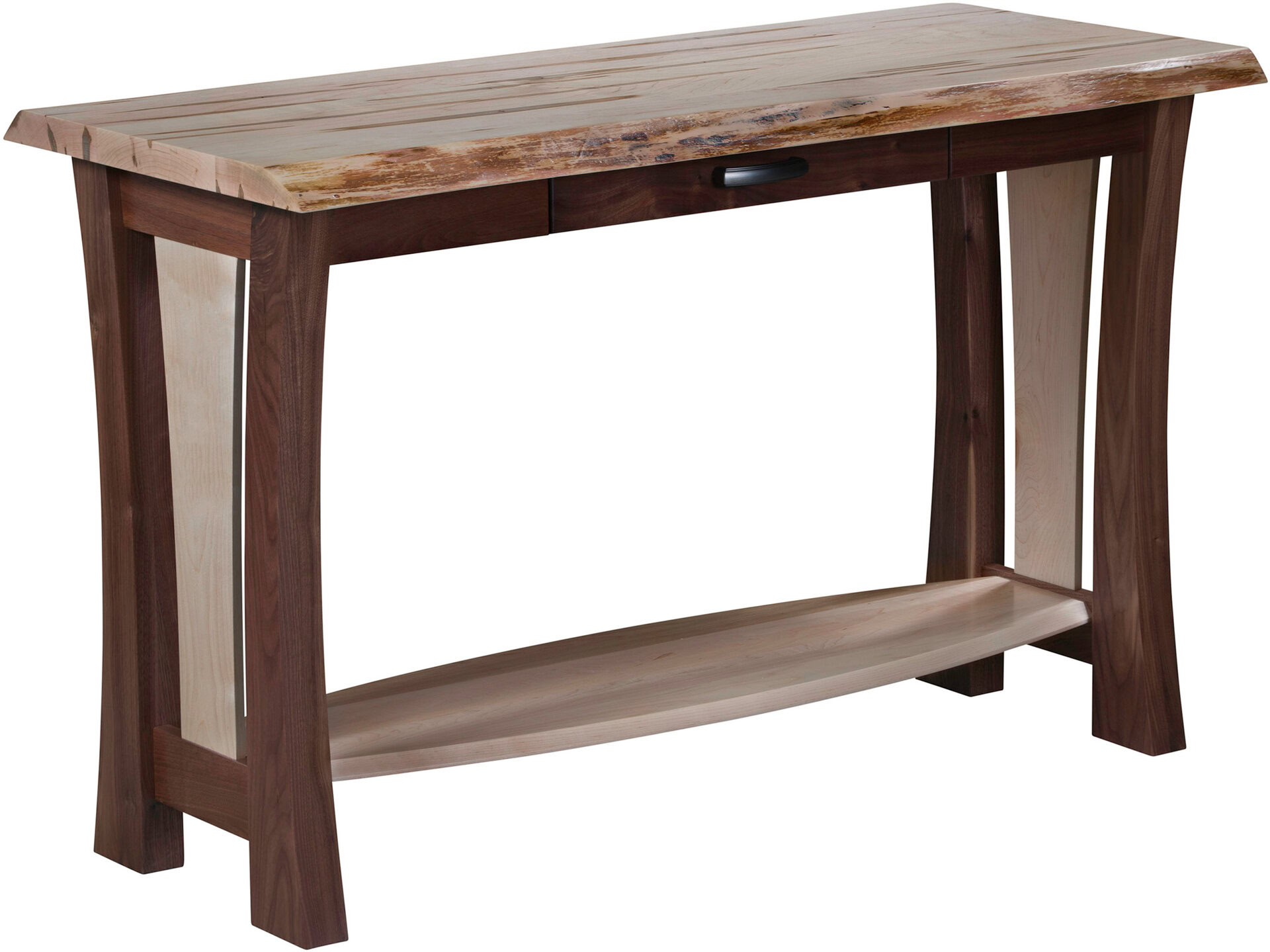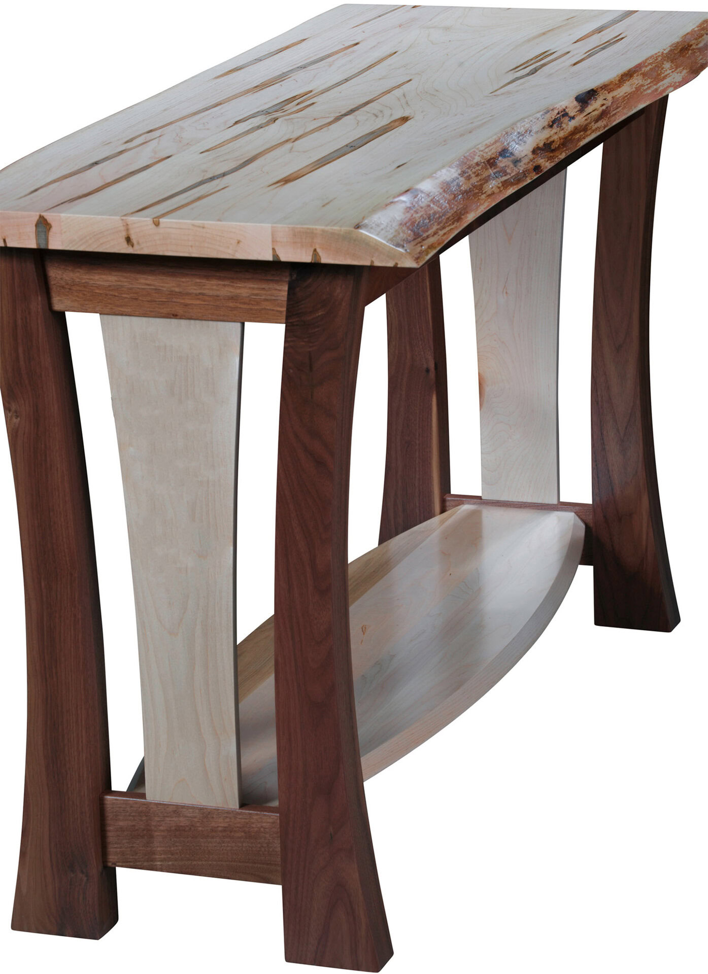 Looking for a sturdy, solid hardwood occasional table set that’s sure to turn heads? Choose the Legacy Live Edge Occasional Table Set. We build the tops, shelves and side insets from natural wormy maple. Also, we complement it with natural walnut. In addition, we hone the 1 1/2-inch-thick tops with a live edge in the front and back. And you’ll like the curved, beveled shelves. In fact, they match the sleek, curved legs. Amish cabinetmakers build each set. So it’s incredibly sturdy. Beautiful. And heirloom-quality! Available as shown or customized. Ready to order the Legacy Live Edge Occasional Table Set? Click the “Customize this product” button below. Then, complete the “Customize Product” fields. Also click the “Get your customized quote” button. Or call 855-768-3270.