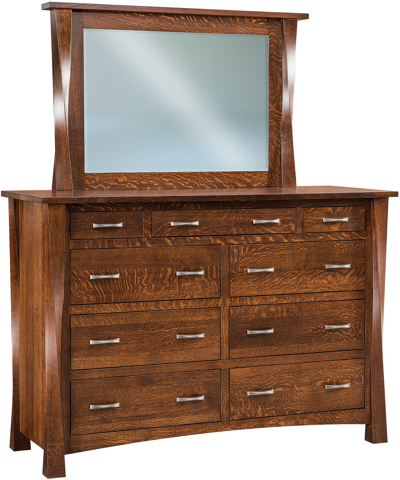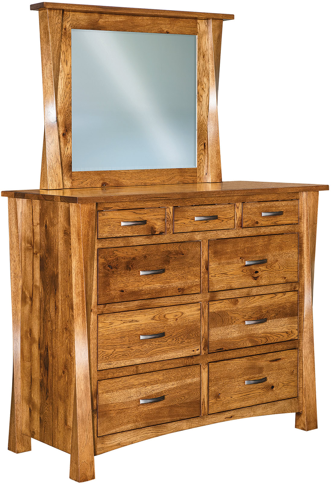 Iconic ‘twisted’ posts and flush drawer fronts. Also, solid hardwood Amish construction. Welcome to the Lexington Nine-Drawer Mule Dresser. Because you couldn’t ask for a more prestigious-looking dresser. And what an abundance of storage space! The nine drawers open full-extension. So you’ll enjoy easy access to everything. Even items at the back! Dovetail drawer joints enhance strength. You can choose from two dresser widths. Amish artisans build each Lexington Mule Dresser. Also, they use top hardwoods. So the dresser is heirloom quality! Now, make it yours. Simply complete the customizing fields below. With your choices for wood species, finish, soft-close drawers, live edge, and more. Or call 855-768-3270.