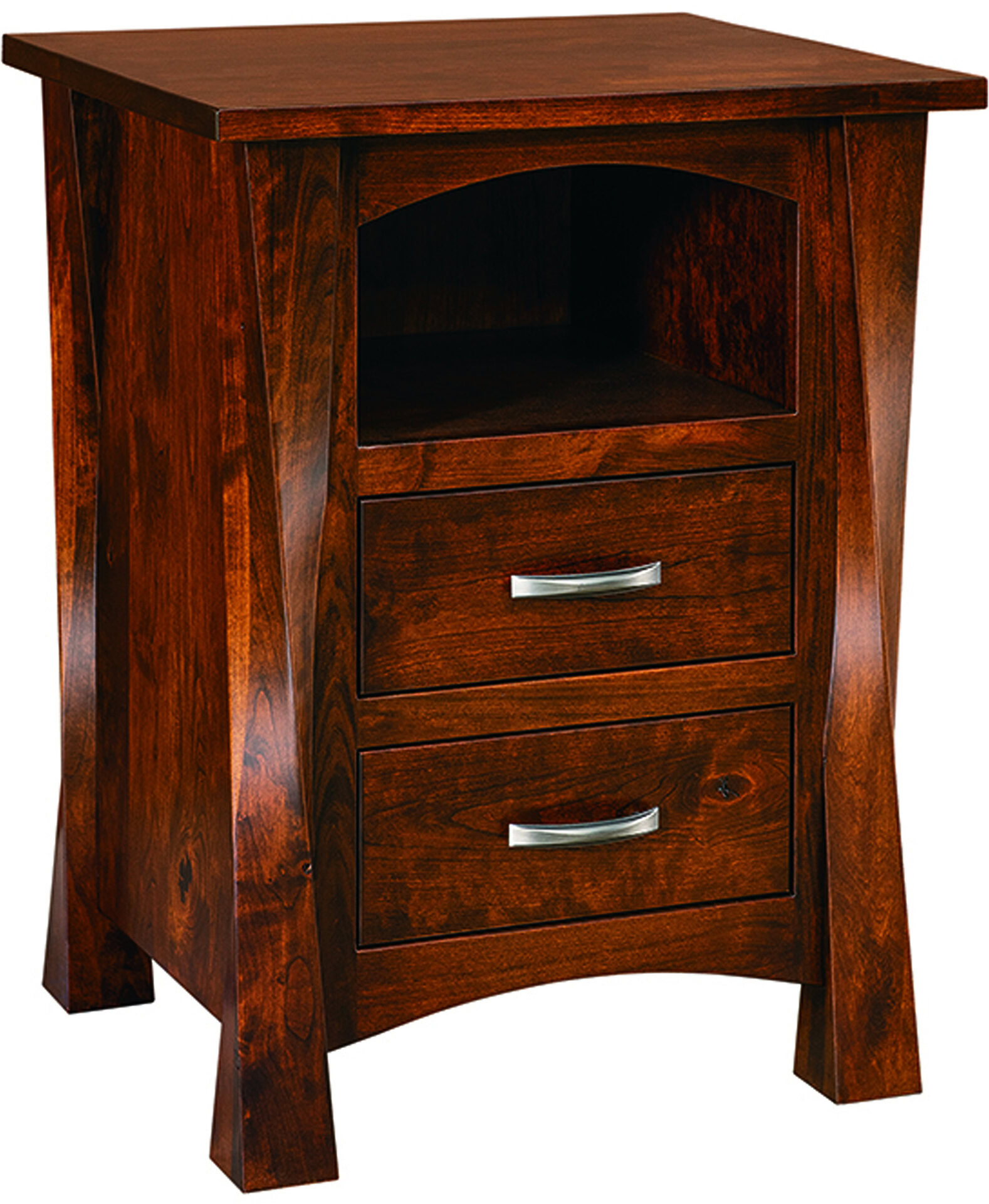 Captivating ‘twisted’ post design. Hefty, 1-inch-thick top. Also, solid hardwood construction. This is the Lexington Small Nightstand. So imagine a pair in your bedroom! We offer the nightstand in many configurations. This means you’re sure to find a favorite! Also, the drawers open full-extension. Giving you easy access to everything. Even items at the back! What’s more, dovetail drawer joints enhance strength. Amish artisans build each Lexington Small Nightstand. Also, they use top hardwoods. Like oak, maple, and cherry. So the nightstand is heirloom quality! Now, make it yours. Simply complete the customizing fields below. With your choices for wood species and finish. Also, your favorite combination of drawers, doors, and open space. Or call 855-768-3270.