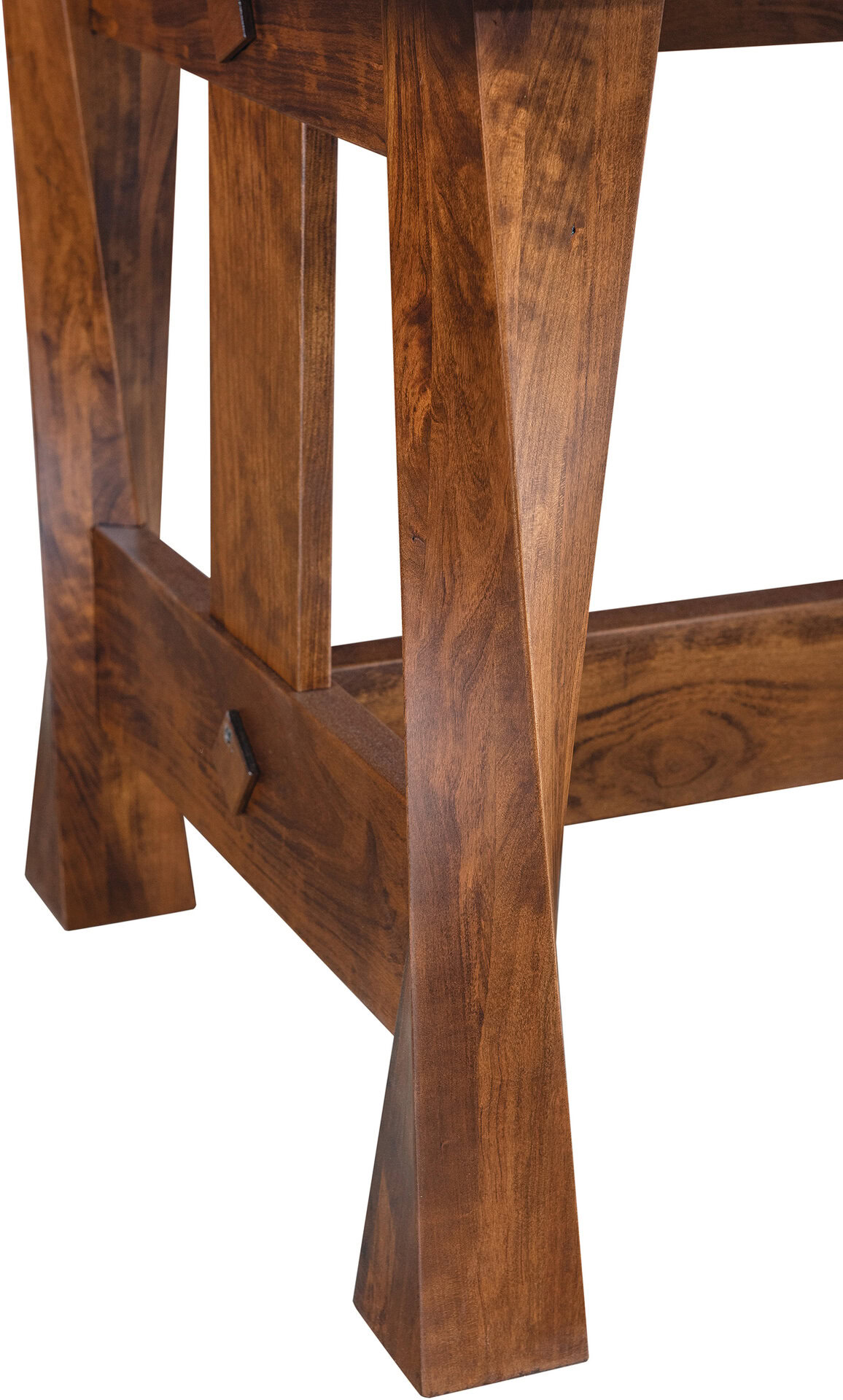 The iconic ‘twisted post’ design of the Lexington collection meets with geared equalizer slides and solid hardwood Amish construction. That’s the essence of the Lexington Trestle Table. We offer the table in 42 and 48 inches wide. Also 60, 66, or 72 inches long. Care for more space? You can request up to four 12-inch leaves. And extending the table is easy. Gently pull on one end, and the geared equalizer slides spring into action. The tabletop moves apart, leaving a space in the middle to insert the leaves. Also, the leaves can self-store. Our Amish artisans handcraft each Lexington Trestle Table. Also, they use top hardwoods. Such as cherry and maple. No wonder the table is so elegant. Also heirloom-quality! Now, make it yours. Simply complete the customizing fields below. Also, make sure you include your choices for wood species, finish, and more. Or call 855-768-3270.