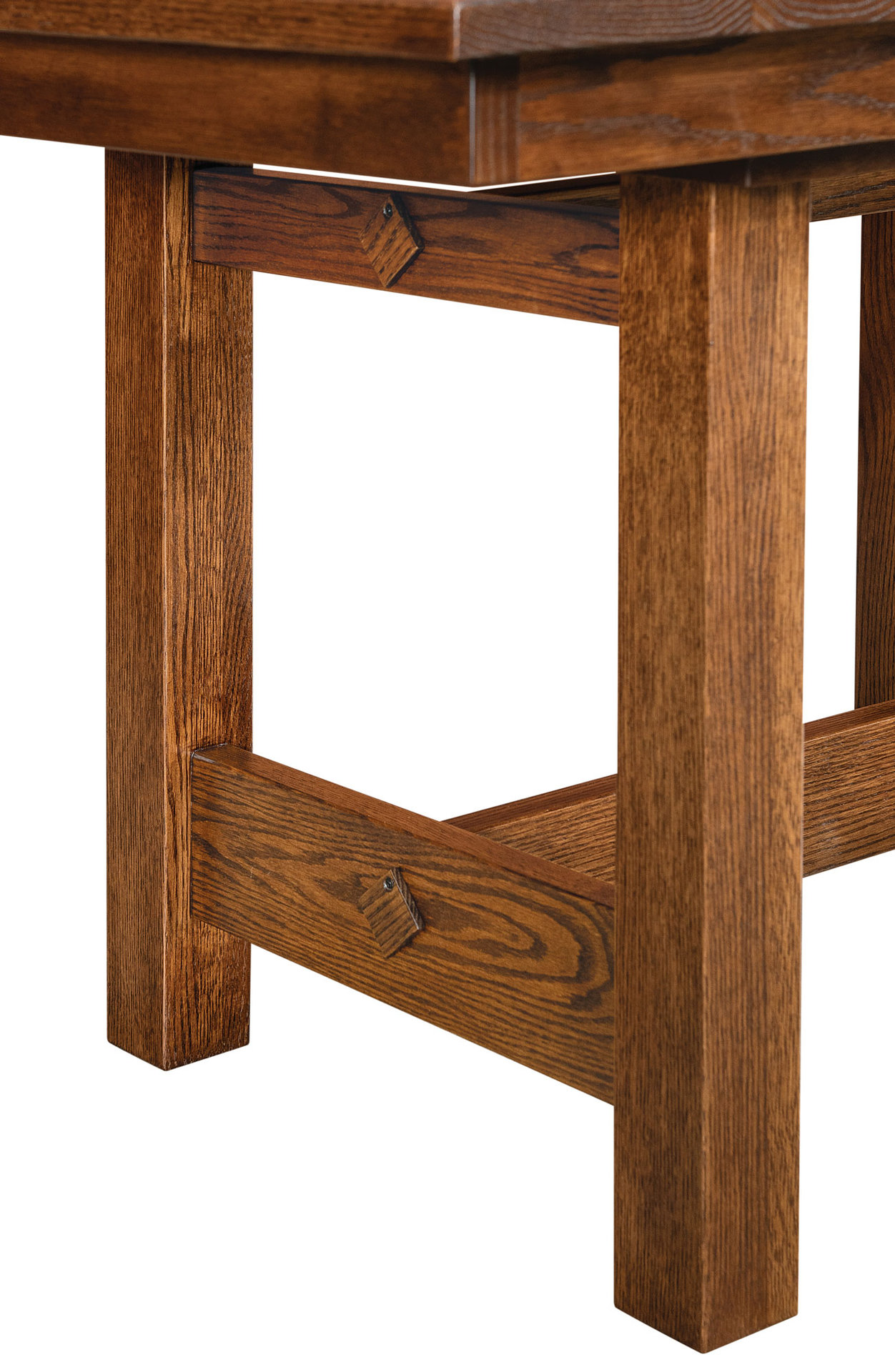 The simple trestle design features hefty legs with visible tenons and rich woodgrain. That’s the first thing that catches the eye on the Logan Trestle Table. It’s a top pick for any traditional dining room. The table comes in widths of 36 or 42 inches plus lengths of 48, 54 or 60 inches. Expecting to entertain friends or family? You can extend the table by inserting up to three 12-inch leaves. Our Amish cabinetmakers build the table. And they use top hardwoods like maple, cherry and red oak (shown with FC-10944 Tavern Stain). No wonder the table is so great-looking, sturdy and heirloom-quality! Now, make it yours. Simply complete the customizing fields below. Also, make sure you include your choices for wood specie, finish and more. Or call 855-768-3270.