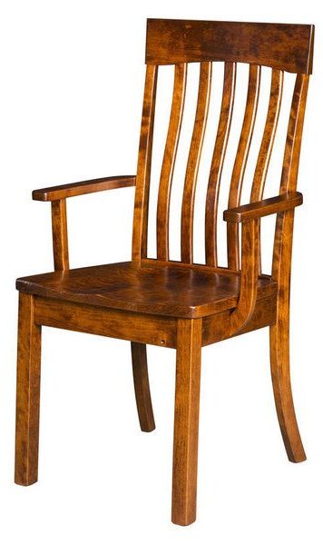 The stately look of the Mission style plus superb Amish cabinetry make the Madison Kitchen Chair a top choice for your upscale dining room. We offer the piece as a side chair and an armchair. So, you can surround your dining table with either — or both. The curved slats provide great lumbar support. While the saddle scoop seat enhances comfort. Want even more comfort? Request an upholstered seat, finished in fabric or leather. Our Amish cabinetmakers build the chair. And, they use top hardwoods like oak, maple and cherry. No wonder the chair is so great-looking, sturdy and heirloom-quality! Now, make it yours. Simply complete the customizing fields below. Also, make sure you include your choices for wood species, finish and more. Or call 855-768-3270.