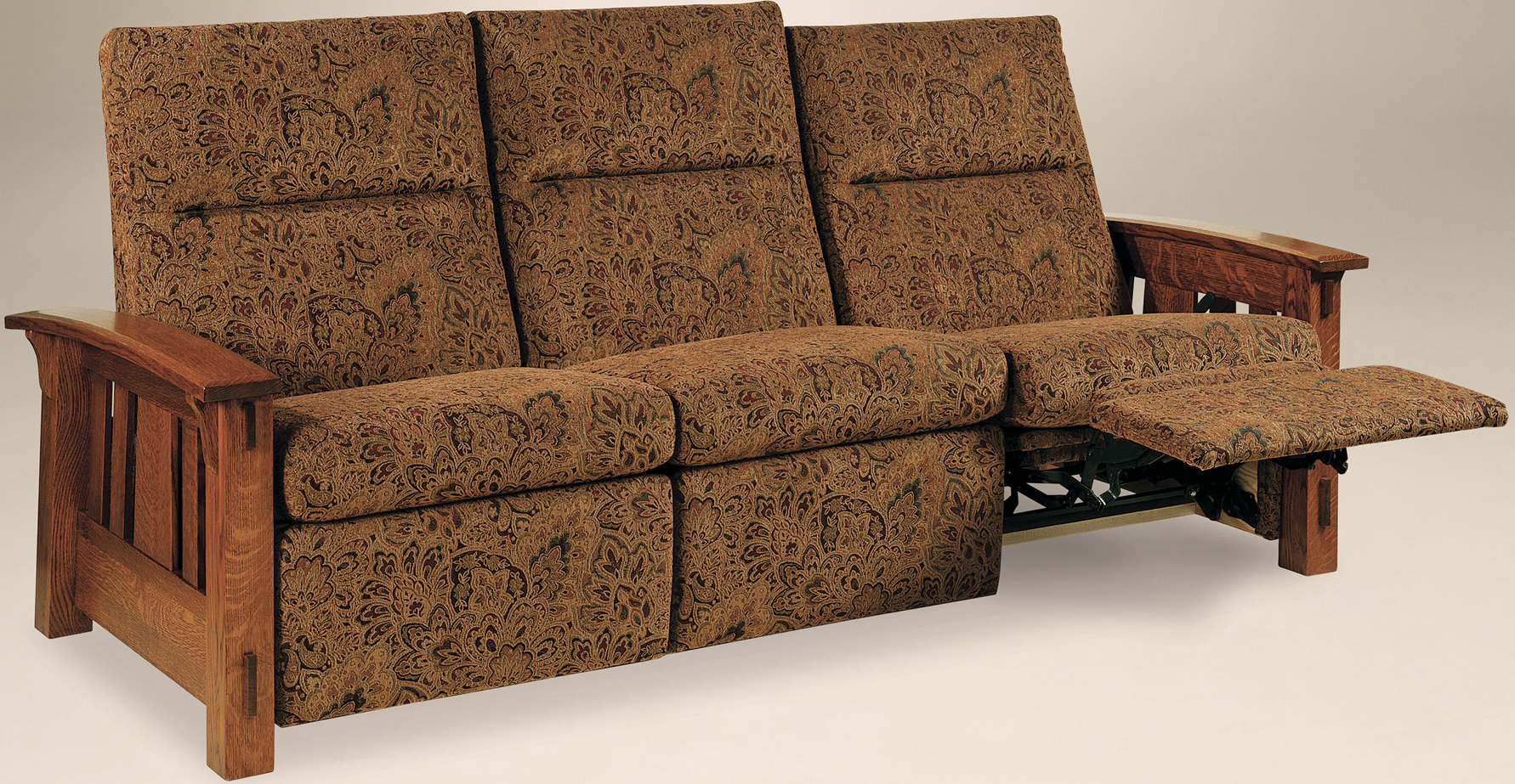 The McCoy Sofa Recliner features bowed arms and plush seating.