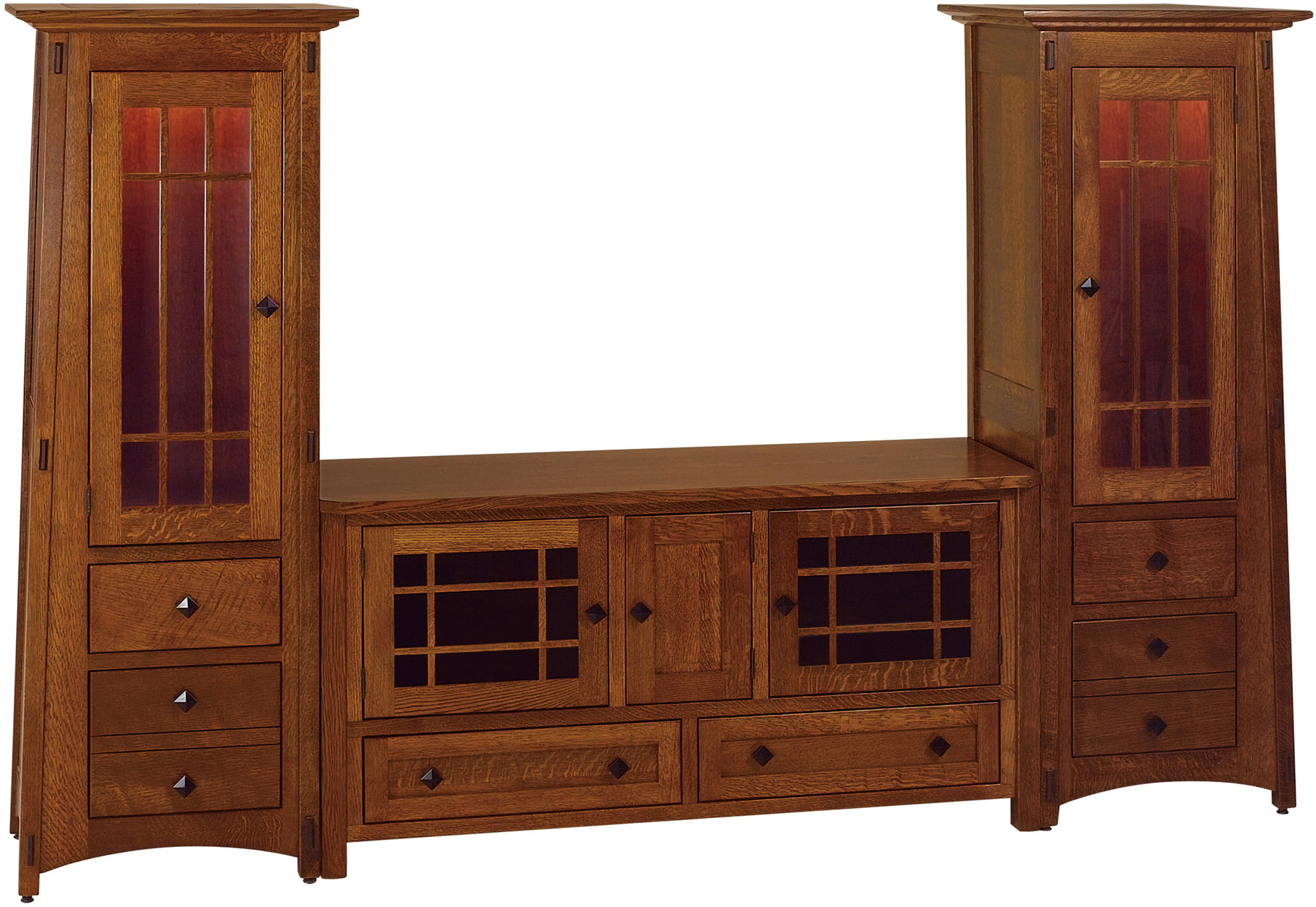 You can order the entertainment center as shown or unfinished. Or, we’ll build it to your specs. So tell us your wishes. Such as the wood specie, finish and hardware.