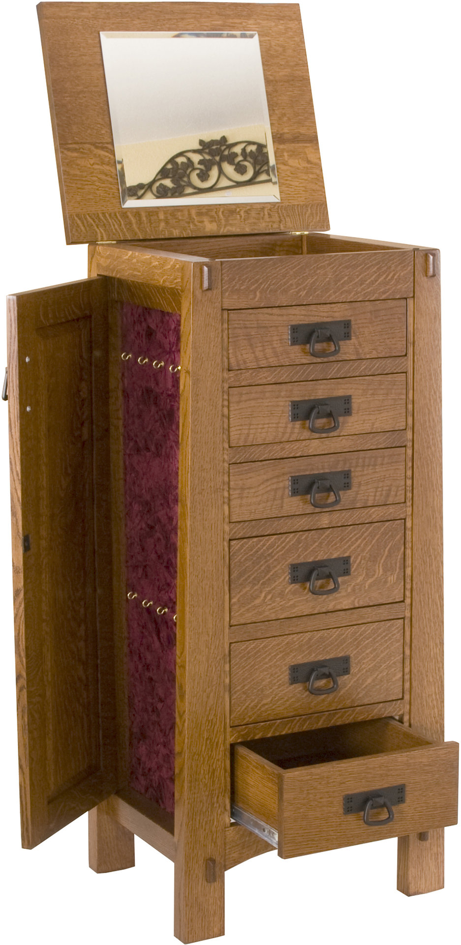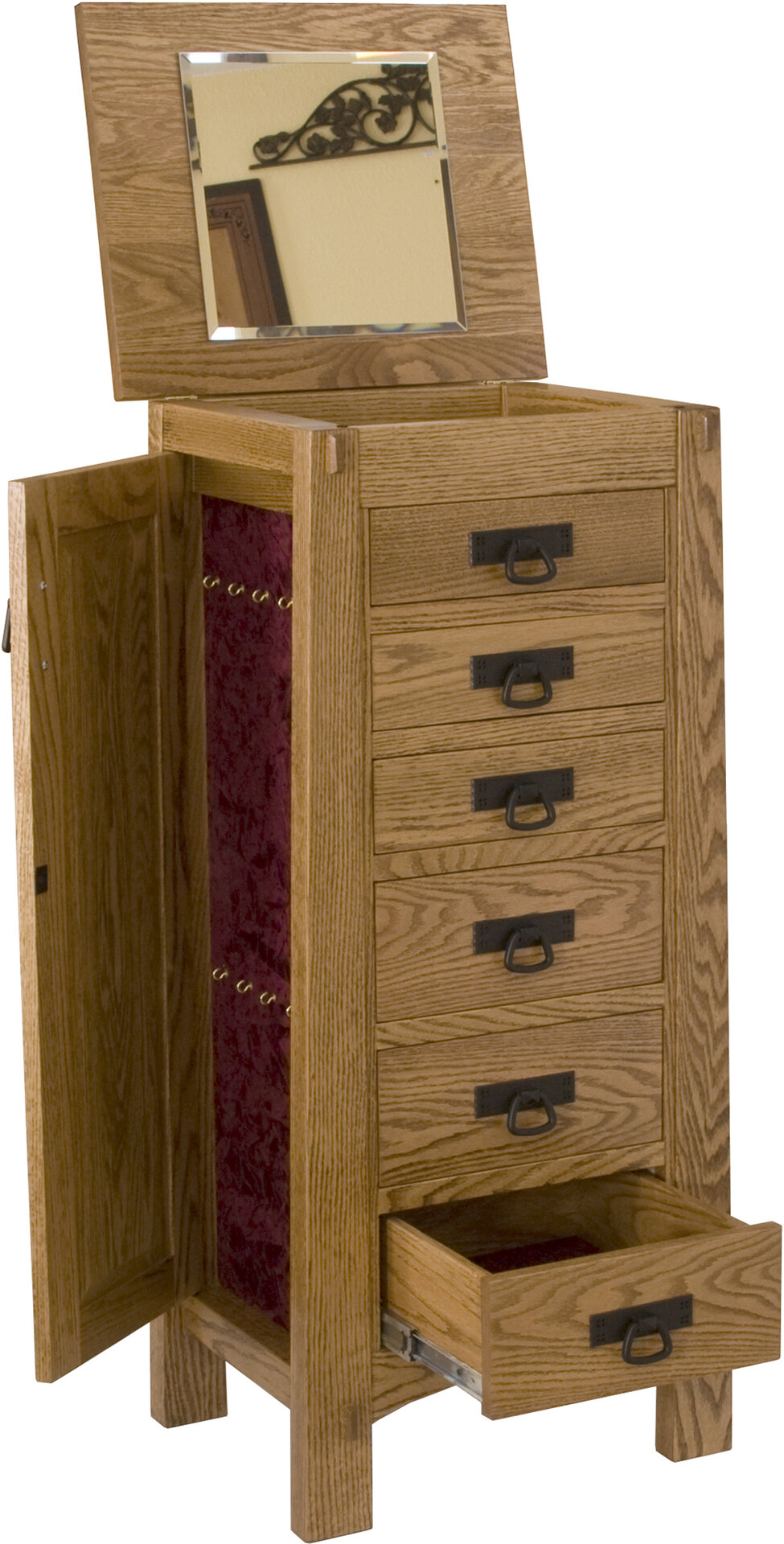 Jewelry Armoire made of solid Quarter Sawn White Oak wood in Modesto style.