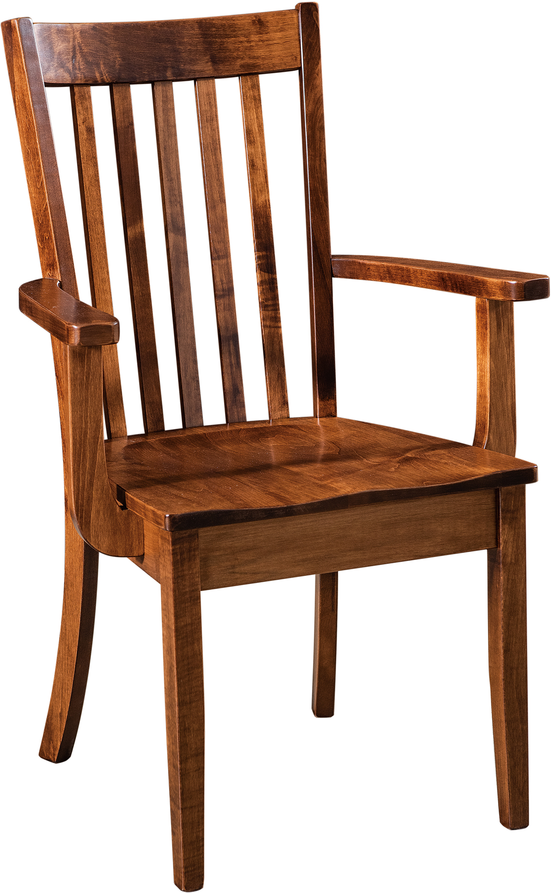 The Newport Chair combines the Mission style with solid hardwood Amish construction. So this explain its clean lines, narrow wood slats and stately persona. Imagine how much a set of these chairs will enhance the look of your dining room. We offer both side chairs and arm chairs with this design. Giving you flexibility in creating your set. Amish artisans build each chair. Also, they use top hardwoods. Like cherry, oak and brown maple (shown with FC-9018 Lt. Asbury Stain). No wonder the Newport Chair is so sturdy. Handsome. And heirloom-quality! What’s more, your order is available faster with Quick Ship of Indiana. To order, click the “Customize this product” button below. Then, complete the “Customize Product” fields. Also click the “Get your customized quote” button. Or call 855-768-3270.