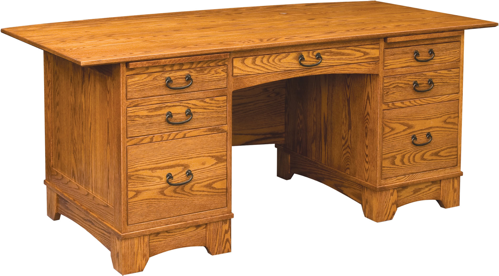 Looking for a home office desk that has the word ‘executive’ written all over it? Check out the Noble Mission Executive Desk. Take the desktop: It’s made from 1-inch-thick solid hardwood and has a curved back. And in true Mission style, the desk has flush drawer fronts, recessed side panels and a curved skirt in the knee and base. Plus, we finished the the back. Also, the drawers open full-extension for easy access to everything inside. What’s more, two pull-out boards expand your workspace. Our Amish cabinetmakers build the desk. And they use top hardwoods like cherry, maple and oak (shown). No wonder the desk is so sturdy and heirloom-quality! Now, make it yours. Simply complete the customizing fields below. Also, make sure you include your choices for wood species, finish and more. Or call 855-768-3270.