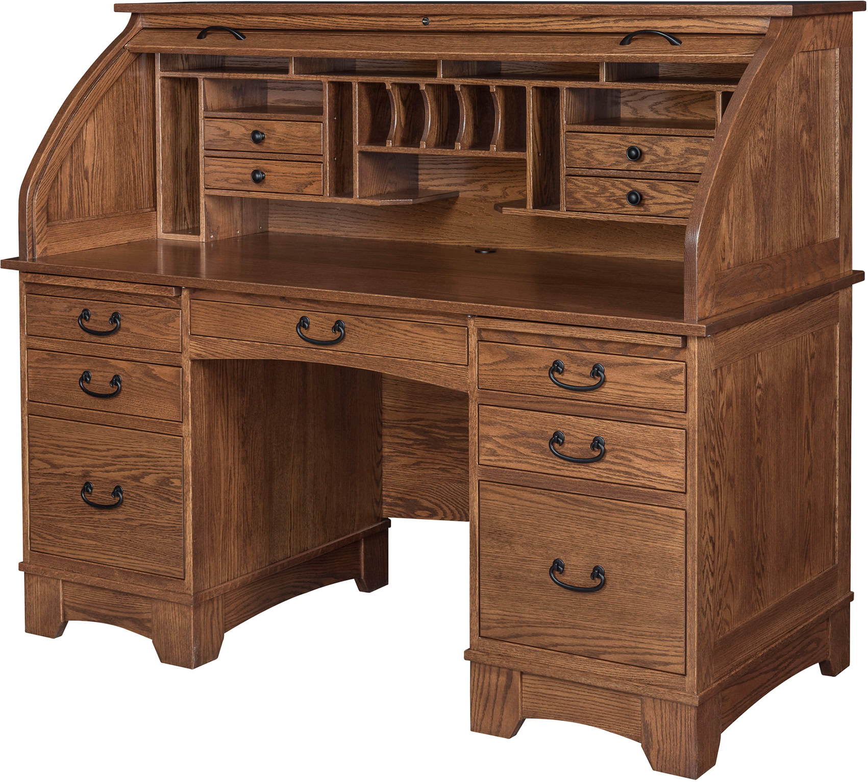 Combine a computer desk with a credenza plus a touch of nostalgia. And you get the Noble Mission Roll Top Desk. What a lovely piece for your home workspace! With the tambour (flexible wood panel) rolled up, you get a huge work area. Plus cubbies and small drawers for your office supplies and papers. Also, the two pullout writing boards extend your workspace. While the letter-size drawers come in handy for storing files. What’s more, the drawers open full-extension for easy access to everything inside. With the tambour rolled down – and locked – your desktop and credenza items are secure. Our Amish cabinetmakers handcraft the desk. And they use top hardwoods like red oak (shown with CFS 12 finish). No wonder the desk is heirloom-quality! Now, make it yours. Simply complete the customizing fields below. Also, make sure you include your choices for wood species, finish and more. Or call 855-768-3270.