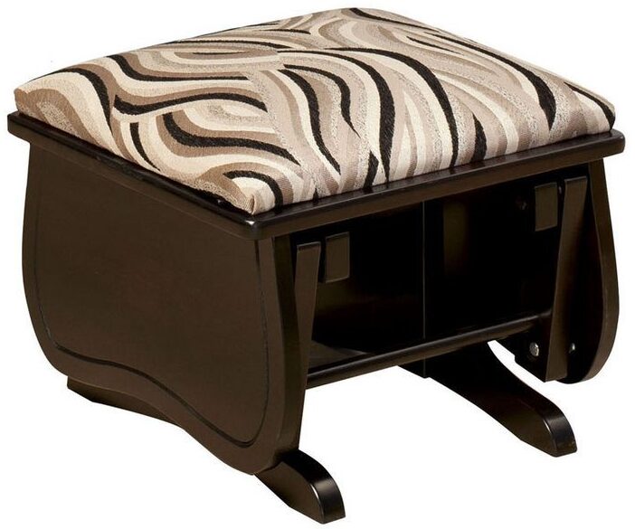 The Oakland Slat Glider and Ottoman boasts a sleek wood finish.