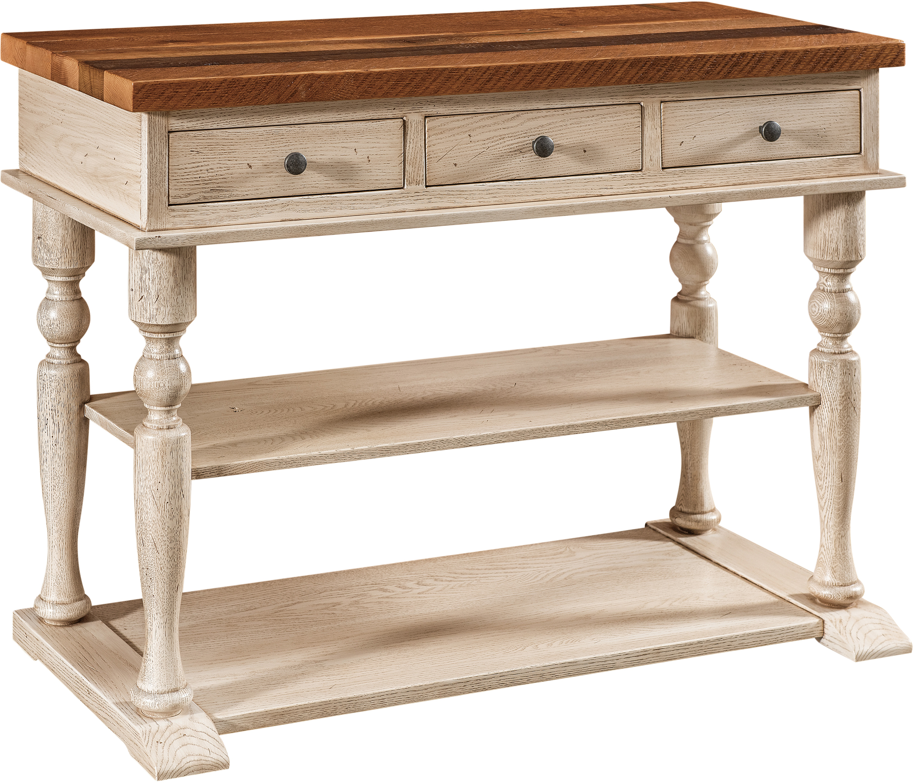 In creating the Old Traditions Server, our Amish designers and cabinetmakers combined elements of a traditional farmhouse with classic woodworking. Imagine this beautiful piece in your dining room! We’re showing the countertop in reclaimed barnwood. Or, you can request a smooth top. What’s more, the turned legs are finished with white paint with a warm brown glaze – distressed. We offer the server in a small, medium and large size. So you can order the unit that best meets your needs and room design. Ready to order the Old Traditions Server? Click the “Customize this product” button below. Then, complete the “Customize Product” fields. Also click the “Get your customized quote” button. Or call 855-768-3270.